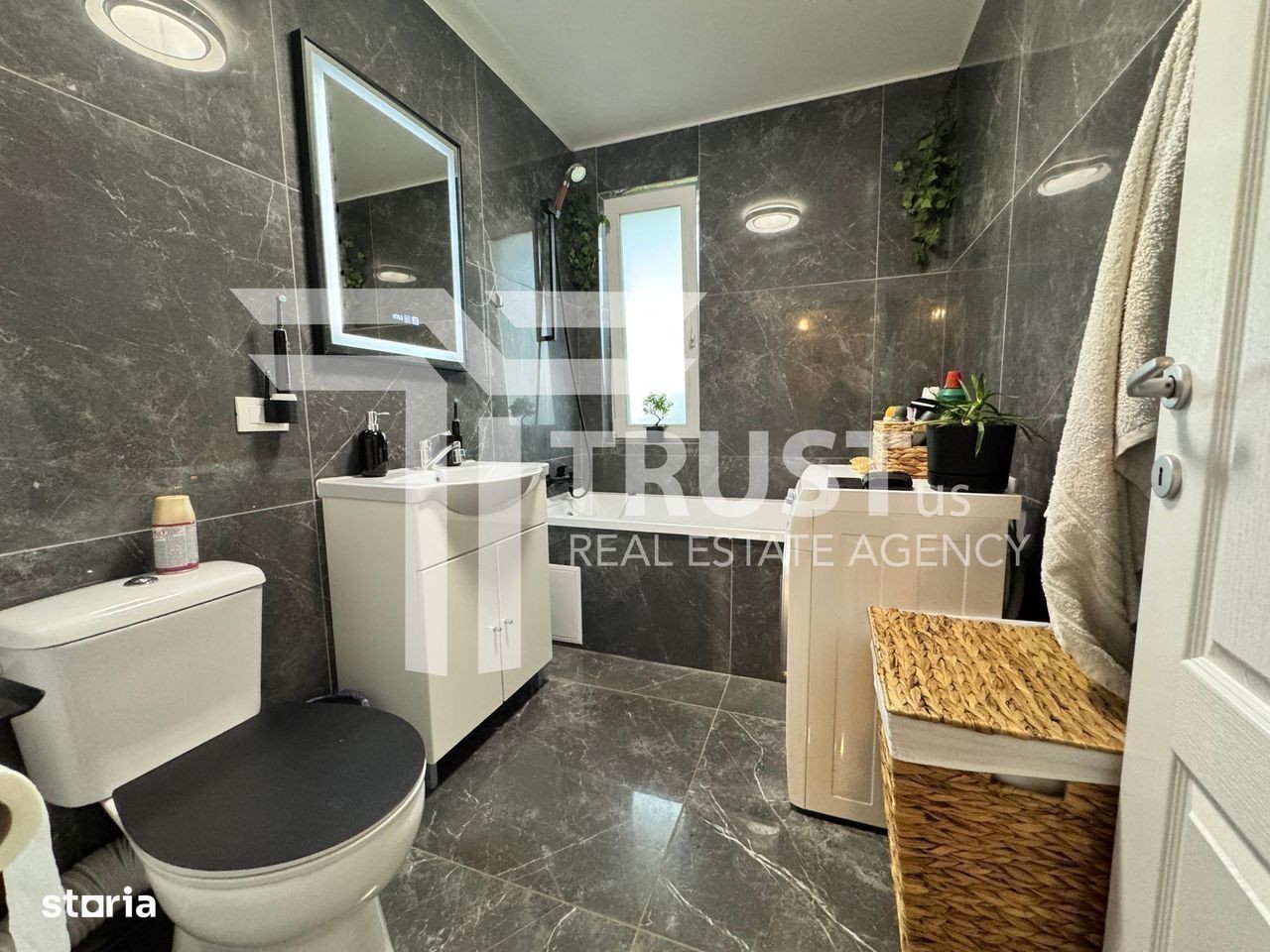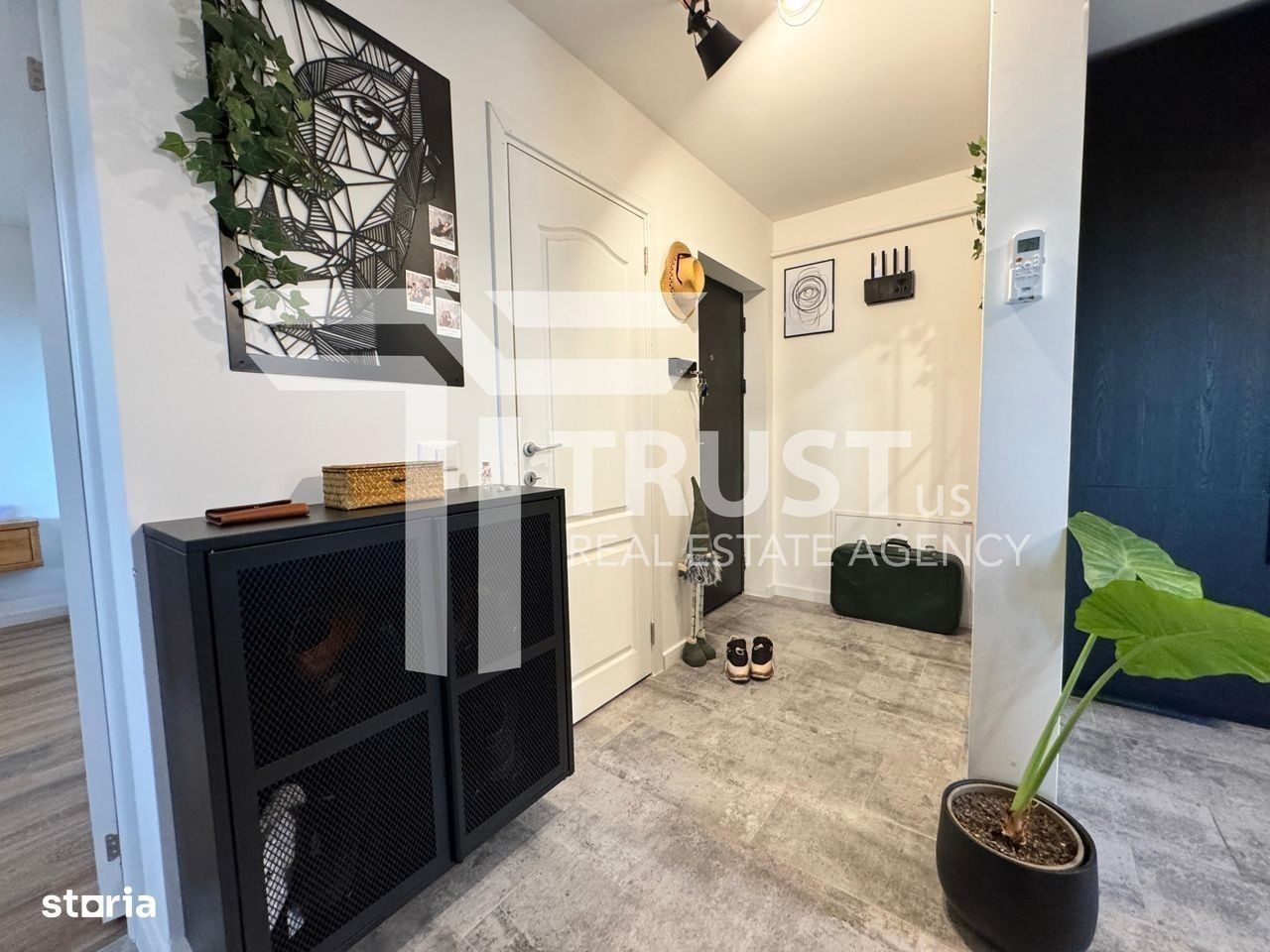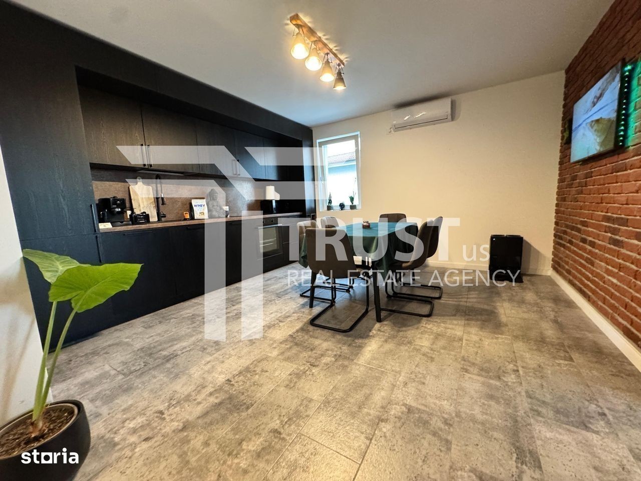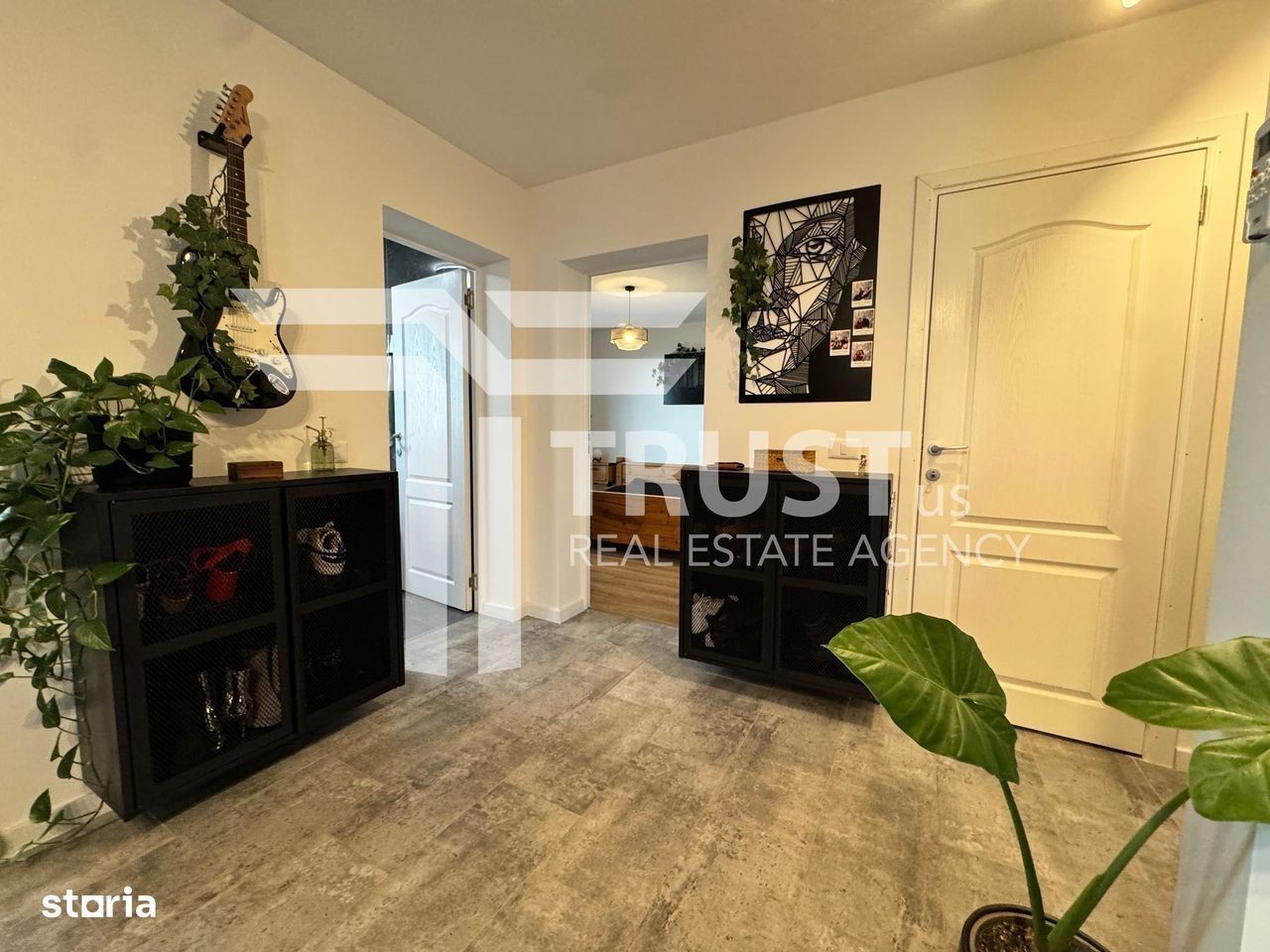 Fara Comision pentru cumparator! COMISION 0%. Apartament modern, complet mobilat și utilat, situat în Giroc, Strada Cerbului, aproape de centura Timișoarei Tip imobil: Apartament cu 2 camere Locație: Giroc, Strada Cerbului - la doar 2 minute de accesul la centura Timișoarei și aproape de restaurantul Flonta Etaj: 3/3 cu pod deasupra Suprafață utilă: 53mp + balcon 9mp Descriere și dotări: Apartamentul se vinde complet mobilat și utilat, fiind ideal pentru cei care doresc să se mute imediat într-o locuință modernă și bine amenajată. Acesta beneficiază de tehnologii moderne, inclusiv un sistem de iluminat inteligent Philips Hue și o centrală proprie controlabilă din aplicație, oferind un confort sporit. Compartimentare funcțională: Hol generos Zona open space (living + bucătărie complet utilată) Dormitor matrimonial cu acces la dressing Baie dotată cu cadă Debara pentru depozitare Balcon spațios de 9mp, ideal pentru relaxare Dotări premium: Bucătărie complet utilată: frigider, plită electrică, hotă, cuptor electric, mașină de spălat vase Dressing incapător Sistem de iluminat Philips Hue, controlabil din aplicație sau vocal Centrala proprie, controlabilă din termostat sau aplicație Aer condiționat, controlabil din telecomandă sau aplicație Design modern cu accente industriale Avantaje locație: Aproape de accesul la centura Timișoarei, facilitând conexiuni rapide Liniște și confort, într-o zonă rezidențială în dezvoltare Aproape de restaurantul Flonta și alte puncte de interes Preț: 105.000 EURO