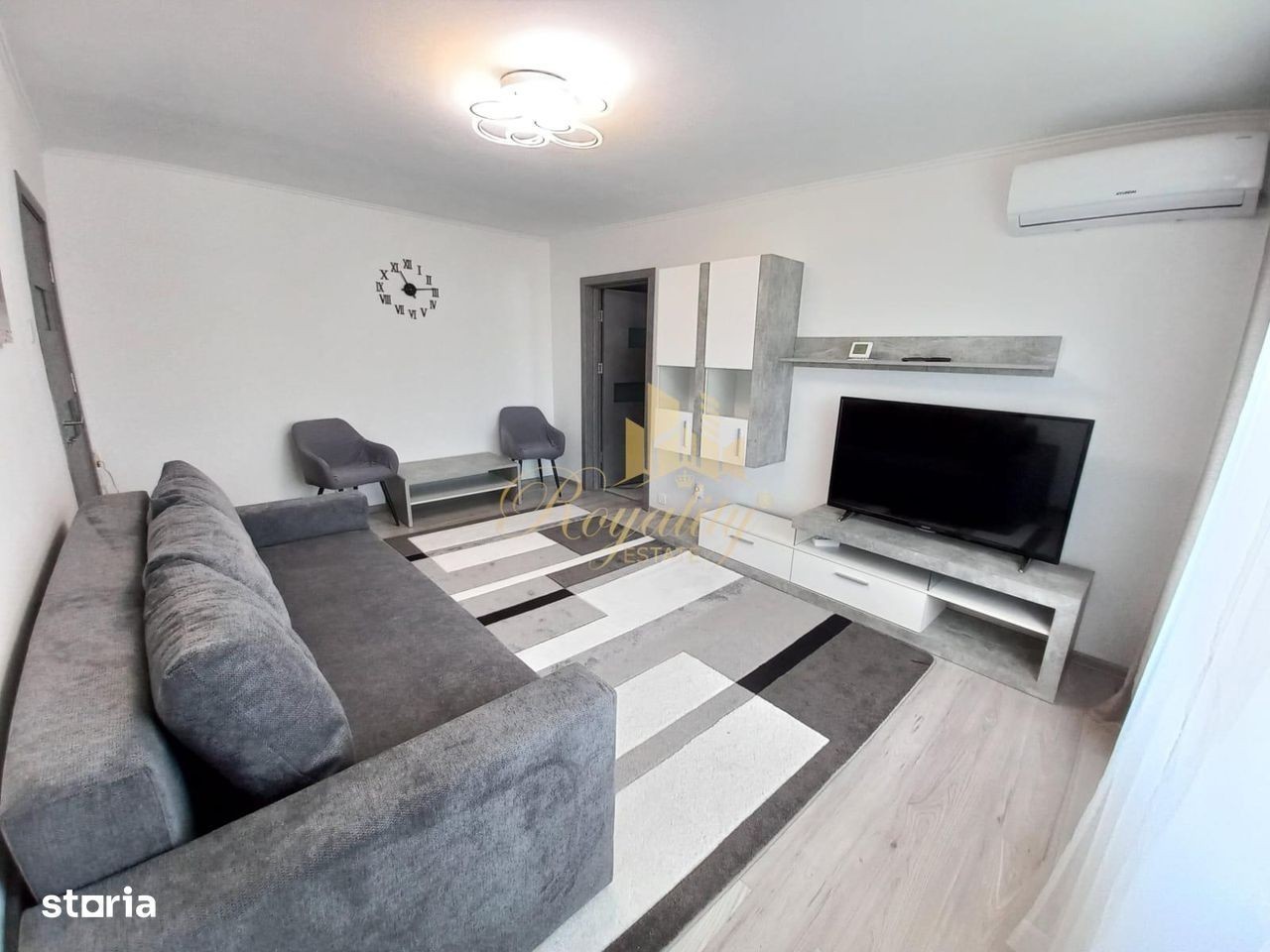 COMISION ZERO! ROYALITY ESTATE va ofera spre inchiriere un apartament cu 2 camere confort 1, situat la etajul 9 intr-un bloc de 10 etaje cu lift, in Zona Intim ( Micro 2 ). Apartamentul are vedere panoramica si o pozitie excelenta, avand statie pentru mijloace de transport in comun langa bloc, piata, diverse magazine si parc. Suprafata utila este de 58 mp, cu un balcon inchis in termopan de 4 mp. Compartimentarea este astfel: - hol - bucatarie spatioasa si inchisa - living si iesire pe balcon - dormitor - baie cu cada si ventilator pentru aerisire Apartamentul se inchiriaza complet mobilat si utilat, dispunand de urmatoarele electrocasnice: plita si cuptor electric, hota, frigider, cuptor cu microunde, masina de spalat haine si TV. Confortul termic se realizeaza prin intermediul centralei proprii pe gaz, iar pentru obtinerea unui aer racoros dispune de clima. Pretul de inchiriere este de 300 euro PRET FIX + garantie 320 euro. Fără animale de companie! MINIM 1 AN! Daca v-am starnit interesul, va asteptam cu drag la o vizionare. Telefon