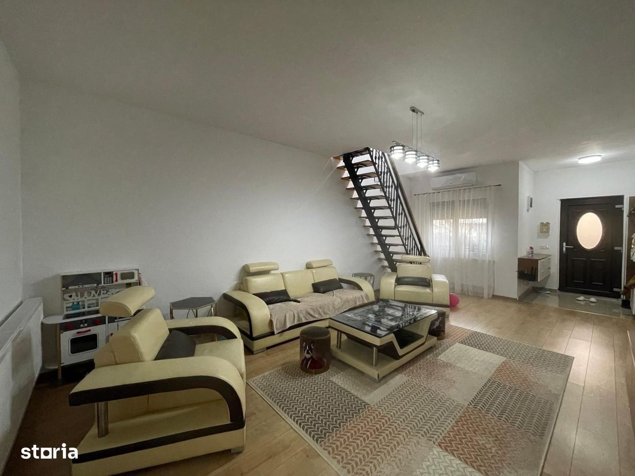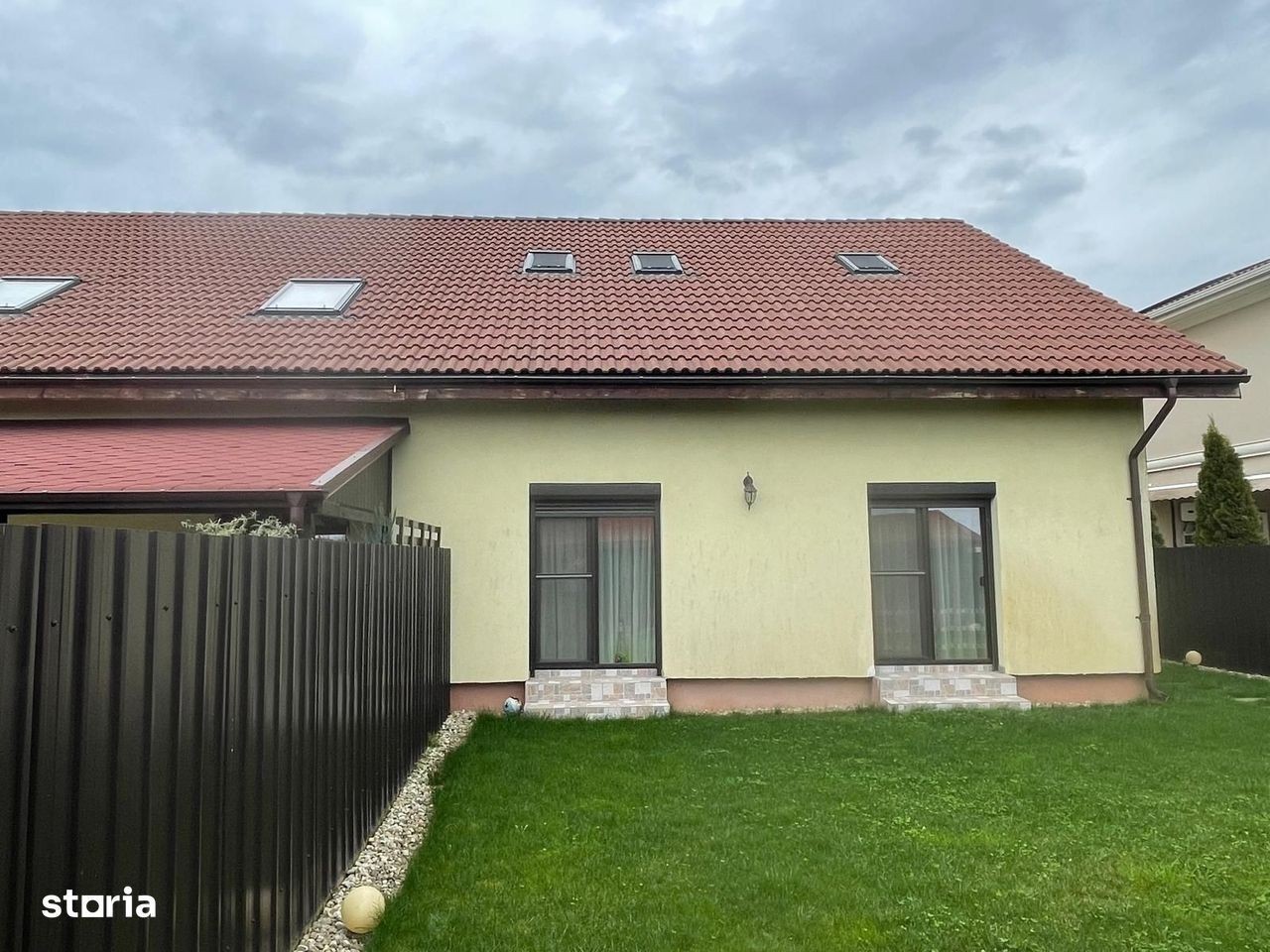 Rex Imobiliare va ofera oportunitatea de a achizitiona o jumatate de duplex cu 6 camere situat intr-o zona excelenta, langa asfalt si aproape de noul Lidl din Mosnita Veche Aceasta jumatate va ofera 155mp utili, terasa acoperita si cu magazie de 30mp si un teren aferent de 336mp. Compartimentarea este realizata astfel: Parter: - hol - living - bucatarie inchisa - baie - 2 dormitoare Etaj: - living - baie - 2 dormitoare Incalzirea se realizeaza prin calorifere cu ajutorul centralei proprii Utilitati: apa, gaz, curent, fosa si iluminat stradal Detalii constructie: - zid despartitor izolat fonic pe ambele parti -structura beton si caramida de 25cm -ziduri interioare din caramida 12,5cm si 25cm -izolatie exterioara polistiren de 10cm EPS80 - acoperis din tigla -tamplarie PVC si geamuri termopan - curte amenajata cu pavaj si gazon - automatizare acces auto - instalatie de irigare gazon cu apa forata Casa se vinde complet mobilata si utilata exact ca in poze Dotari: aragaz, cuptor, hota, masina de spalat haine, masina de spalat vase, frigider, aer conditionat Pret: 229.900 euro negociabil Pentru mai multe detalii si vizionari sunati la