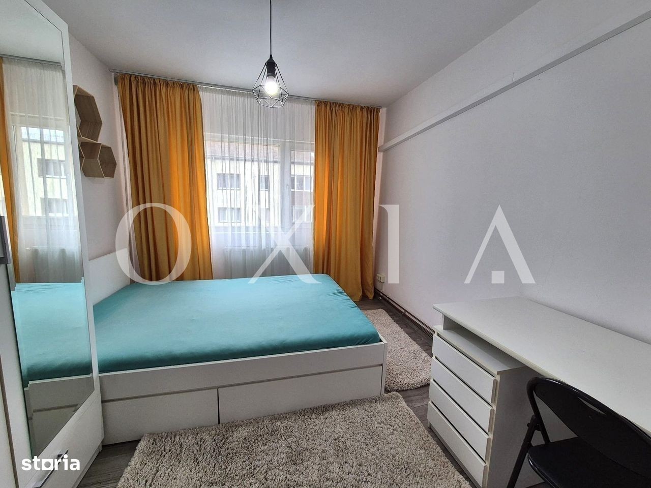 OXIA prezinta spre inchiriere apartament cu 3 camere, situat in Timisoara, zona Girocului - Piata, la etajul 4/4 cu acoperis, bloc reabilitat termic, decomandat, cu suprafata de 65 mp utili + balcon, compartimentat astfel: - Hol acces - Bucatarie - Living - 2 Dormitoare - Dressing -1 Baie cu cabina de dus si geam pentru aerisire naturala - Balcon cu acces din living Apartamentul beneficiaza de amenajari moderne: placi de gresie/faianta, parchet laminat, ferestre PVC cu geam termopan, usi interioare celulare, usa intrare metalica, vopsea lavabila, interfon, etc. Se inchiriaza complet mobilat si utilat. Confortul termic este asigurat prin intermediul centralei proprii pe gaz cu calorifere si prin intermediul sistemului de climatizare. Imobilul este reabilitat termic facilizand confortul termic sporit atat pe timp de iarna cat si de vara. Pret: 500 Euro + Garantie (1 luna) + Comision Agentie Pentru mai multe detalii sau pentru stabilirea unei vizionari ne puteti contacta la numarul de telefon