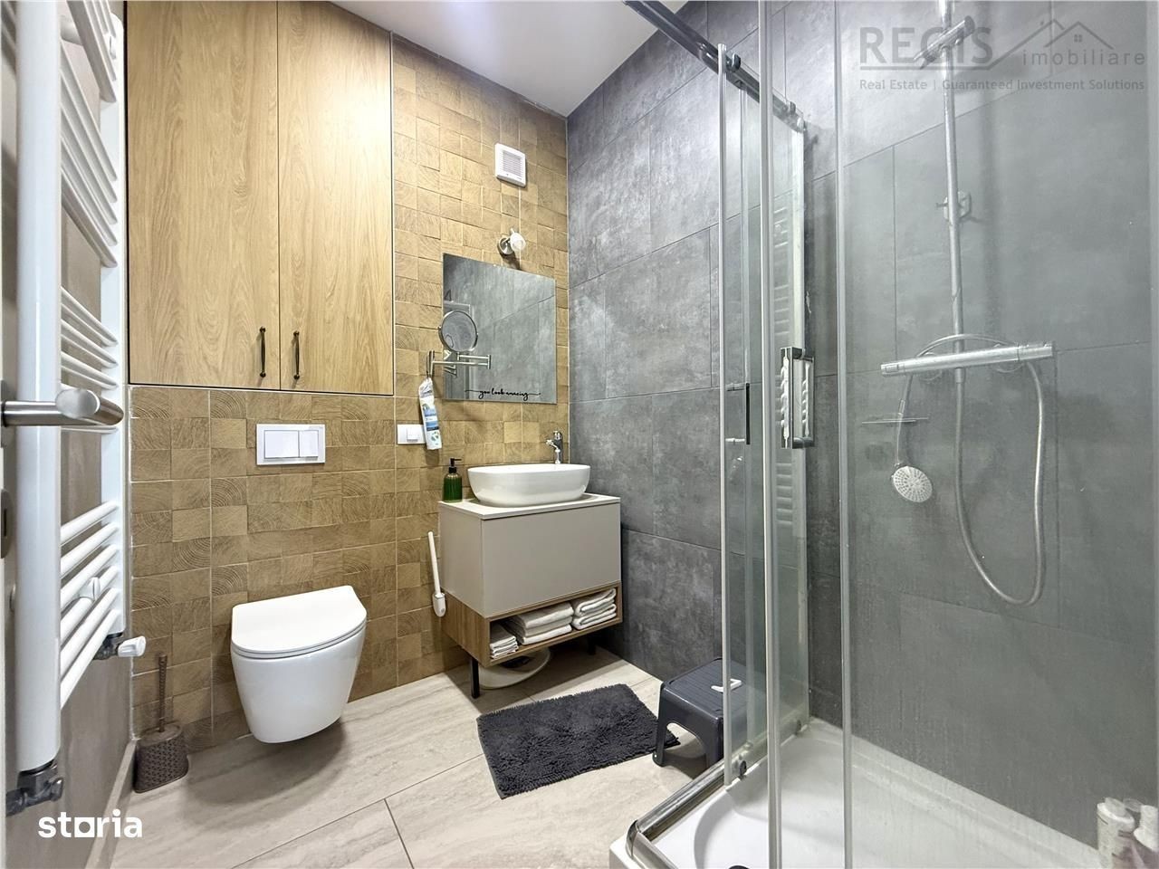 ID: 5857 COMISION 0% Regis Imobiliare va propune spre vanzare un apartament tip penthouse, spatios si luminos, situat in cartierul Tractorul - una dintre cele mai dinamice si cautate zone din Brasov. Cu o suprafata utila de 80 mp si o terasa de 50 mp, acest apartament ofera spatiu generos, lumina naturala si un cadru ideal pentru relaxare sau socializare. Finisajele premium, mobilierul facut la comanda si dotarile moderne sunt ideale pentru cei care cauta confort, eleganta si intimitate la ultimul nivel al unui bloc modern. Detalii apartament: - Suprafata utila: 80 mp - Terasa: 50 mp, cu acces direct din living si din dormitorul matrimonial - Compartimentare: 3 camere decomandate - 2 bai (una cu dus, una cu cada) - Etaj: 5 din 5 - Loc de parcare subteran inclus (chiar la iesirea din lift) - 2 spatii de depozitare (subsol si etaj) Dotari interioare: - Finisaje de top, mobilier la comanda din MDF infoliat antiamprenta - Electrocasnice clasa A++ (frigider, cuptor, masina de spalat vase, masina de spalat rufe si uscator Whirlpool) - Incalzire in pardoseala cu termostat individual in fiecare camera - Izolatie termica excelenta - temperatura vara nu depaseste 26°C, consum redus iarna - Geamuri tripan - izolatie fonica si termica superioara - Semineu electric cu functie de incalzire - Sistem pentru aer conditionat deja instalat - necesita doar montarea unitatii - Locuinta optimizata pentru confort si functionalitate - Imobilul dispune de buncar, accesibil locatarilor in caz de urgenta Dotari exterioare - Terasa: - Suprafata: 50 mp, ideala pentru relaxare sau socializare - Gresie flotanta, robinet anti-inghet, priza cu impamantare - Rulouri exterioare electrice incastrate, cu actionare din interior - Plase de tantari pe rola - Grill pe gaz, cu butelie inclusa Locatie excelenta, aproape de centre comerciale (Coresi), mijloace de transport, scoli, zone verzi, magazine alimentare. Un apartament premium, intr-o zona excelenta, ideal pentru un stil de viata modern si relaxant. Va stam la dispozitie pentru detalii suplimentare si programarea unei vizionari. Asteptam cu drag sa ne contactati! Comisionul agentiei este de 0% Andreea, Consultant Imobiliar