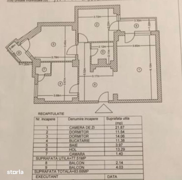 Citiți cu atenție anunțul ! Agenția Partener Imobiliar propune spre VÂNZARE apartament 3 camere ( Living / 2 dormitoare / bucătărie închisă ), situat in Ultracentralul Mun. Pitești, imobil construcție : 1989 / 1990, in regim de compartimentare : Decomandat, etaj 5/7, cu o suprafață de 83.68 mp Utili reali, ce dispune de următoarele specificații :