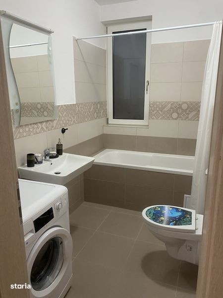 Inchiriez apartament cu 2 camere aproape de Decathlon, Player Sport, cu terasa 10 mp si loc de parcare, incalzire in pardoseala, toate utilitatile necesare, masina de spalat vase, aer conditionat. Tel. Contactează Este situat in zona foarte buna la 5 min mers pe jos de statie bus E1, la 10 min de Auchan, Selgros, Decathlon, Ikea, Voglio. Brutarie, profi si mega image tot la 5 min de mers pe jos. Apartamentul este compartimentat: Bucatarie, Living, Hol, Dormitor, Baie, Balcon Mobilat astfel: Masina spalat vase, cuptor microunde, masina spalat haine, cuptor electric, plita gaz, centrala termica gaz, clima, televizor (toate utilitatile). Pret pe luna 450 euro + 1 chirie garantie