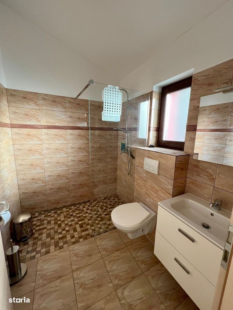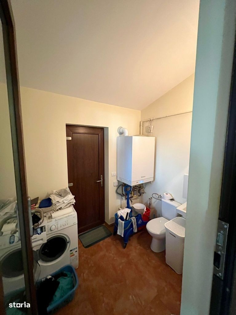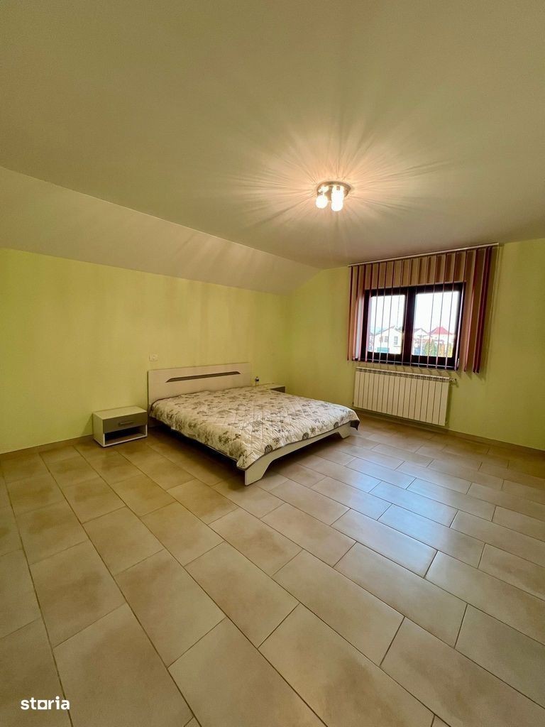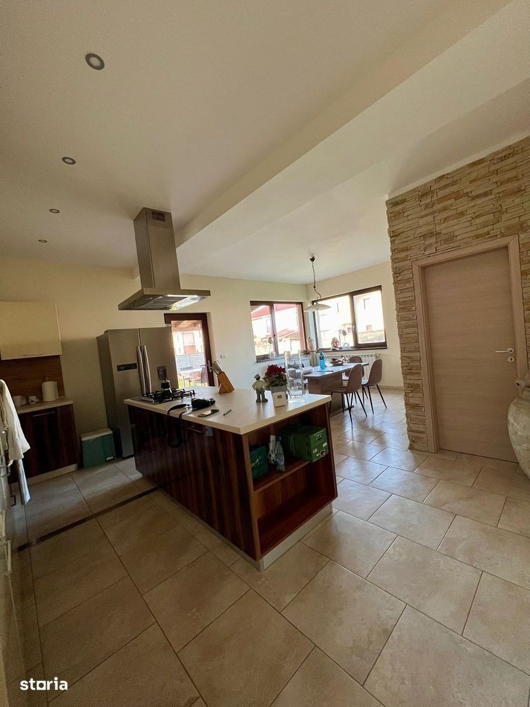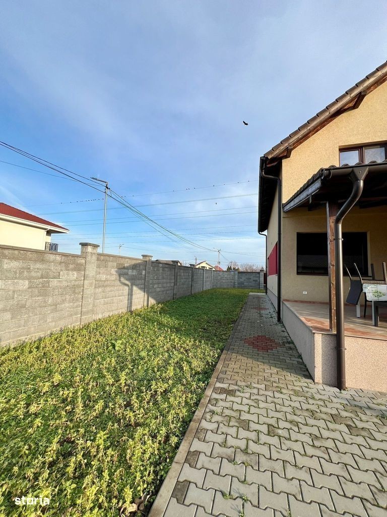 REX Imobiliare va ofera o casa superba individuala intr-o zona linistita din Giroc. Casa individuala in suprafata utila de 220 mp, P+M, pe un teren generos de 652 mp si are urmatoarea compartimentare: Parter: -hol access -baie -living -camera tehnica -bucatarie+dinning -camara -terasa acoperita Etaj: -hol -baie -birou -dormitor -dormitor+dressing -acces pod La parter,casa dispune si de un apartament cu intrare separata in suprafata utila de 31mp si are urmatoarea compartimentare: -hol access,living,dormitor,baie. In apropiere se afla un loc de joaca pentru copii si spatiu verde. Datorita amplasarii excelente, locatia beneficiaza de multiple facilitati,cum ar fi: -scoala,gradinita,magazine alimentare,parcuri,spatii verzi etc. Detalii constructie: -structura beton si caramida de 25cm -ziduri interioare din caramida 12,5cm si 25cm -izolatie exterioara polistiren de 10cm EPS80 - acoperis din tigla Curtea este amenajata cu gazon si pavaj. Utilitati: apa,gaz,curent,canalizare, asfalt la 50 m distanta. Pret solicitat: 370 000 euro negociabil Suna acum pentru a programa o vizionare! Disponibilitate si in zilele de weekend! Mari:
