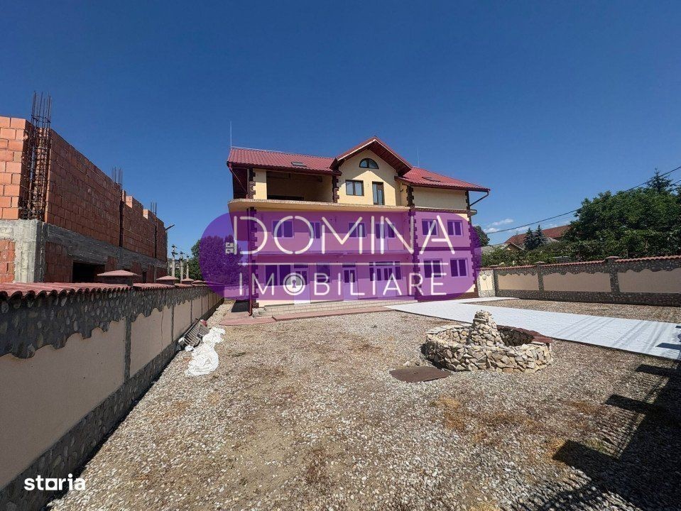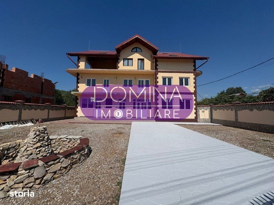 ID/COD ofertă: P1041 Domina Imobiliare vă propune spre vânzare o proprietate generoasă, situată în Loc. Bârsești, la aproximativ 4 km de centrul Municipiului Târgu Jiu - perfectă pentru locuință de familie sau pentru amenajarea unei pensiuni. Proprietatea se află pe un teren cu suprafața totală de 1.652 mp, având o deschidere la stradă de 20 m.l., ceea ce oferă acces facil și vizibilitate bună. Casa, construită în anul 2008, are o structură solidă, cu pereți din bolțari la parter și etaj, iar mansarda din BCA. Acoperișul este din tablă Lindab, durabil și cu un aspect modern. Regimul de înălțime este desfășurat pe parter, etaj și mansardă, cu o amprentă la sol de 196 mp, locuința fiind compartimentată practic și generos, punând la dispoziție 12 camere spațioase, 3 băi, o bucătărie mare, holuri spațioase și 3 terase deschise cu vedere panoramică. Beneficiază de toate utilitățile și dispune de tâmplărie PVC cu geam termopan, centrală termică pe gaz și finisaje de calitate, cu gresie și faianță în zonele amenajate. Curtea este complet împrejmuită cu gard din bolțari și fier forjat, iar accesul se face pe alei din beton amprentat vopsit. În exterior se regăsește o scară placată, o fântână decorativă din piatră și suficient spațiu pentru amenajarea unei grădini, a unui foișor sau a unei parcări generoase. Datorită amplasamentului, dimensiunii terenului și compartimentării, proprietatea poate fi folosită ca locuință pentru o familie numeroasă, dar la fel de bine se pretează pentru deschiderea unei pensiuni, unui centru educațional, spațiu de birouri sau clinică privată! Vrei să vezi mai multe oferte similare? Ne poți contacta la numărul de telefon