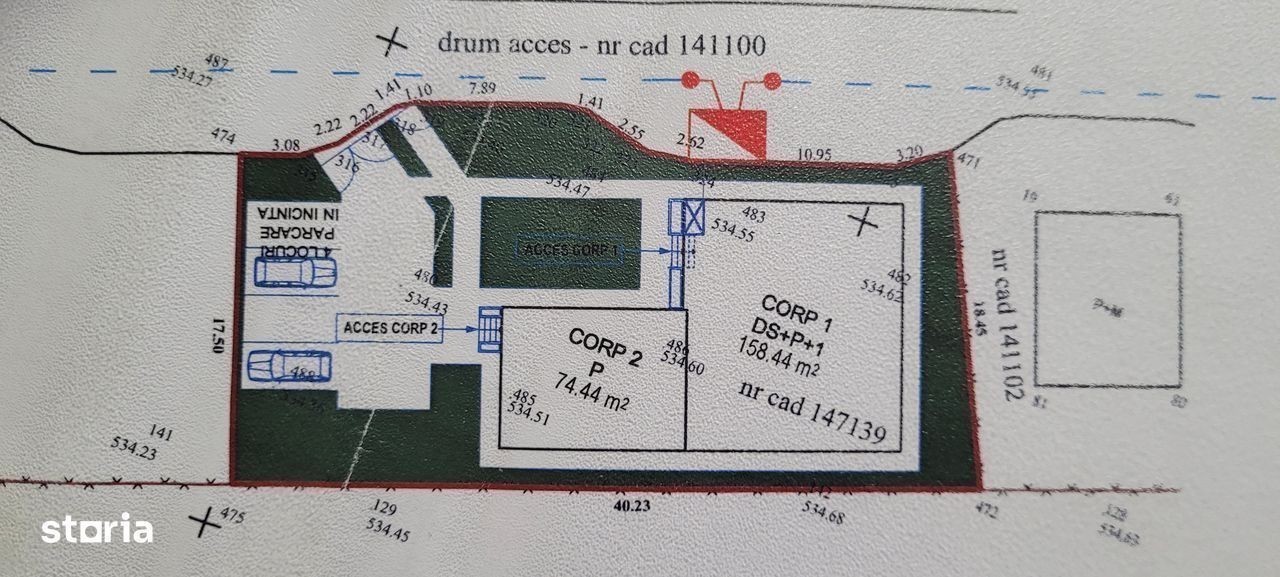 Proprietar vand corp de casa in duplex (Corpul 2 din plan), finalizat 2024, zona Bartolomeu cu toate utilitatile Un singur CF curte si constructie (nu este la comun, totul separat) Suprafata construita de 74,5mp