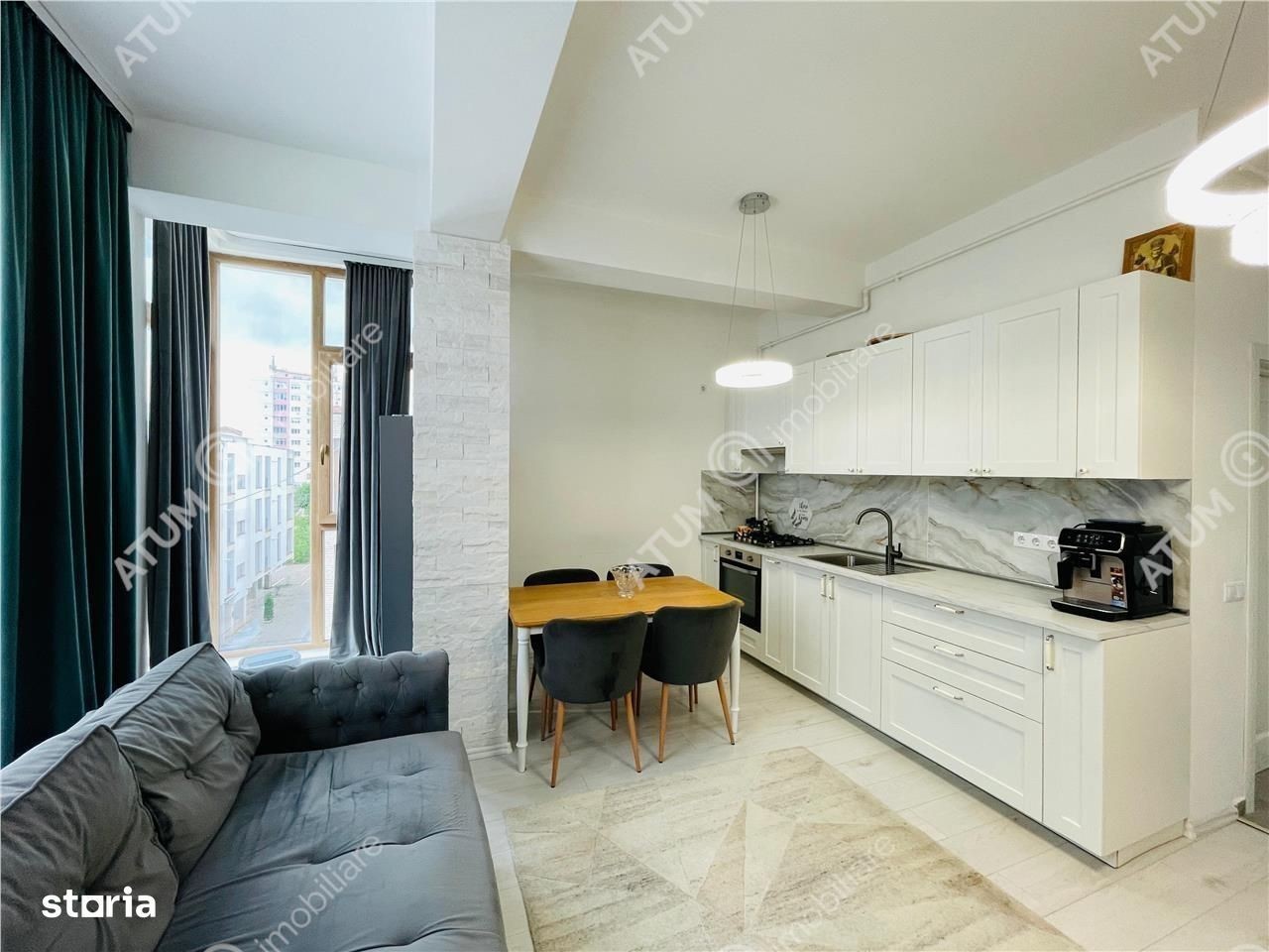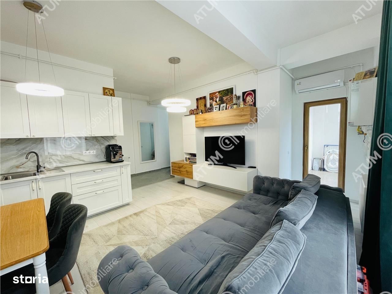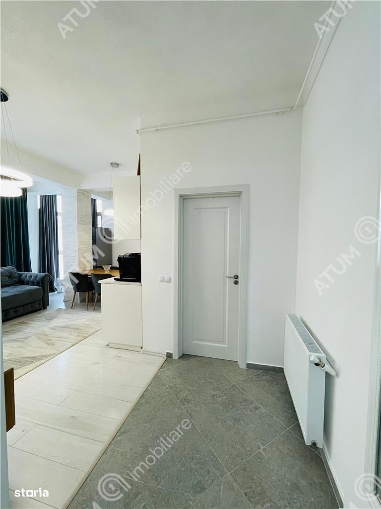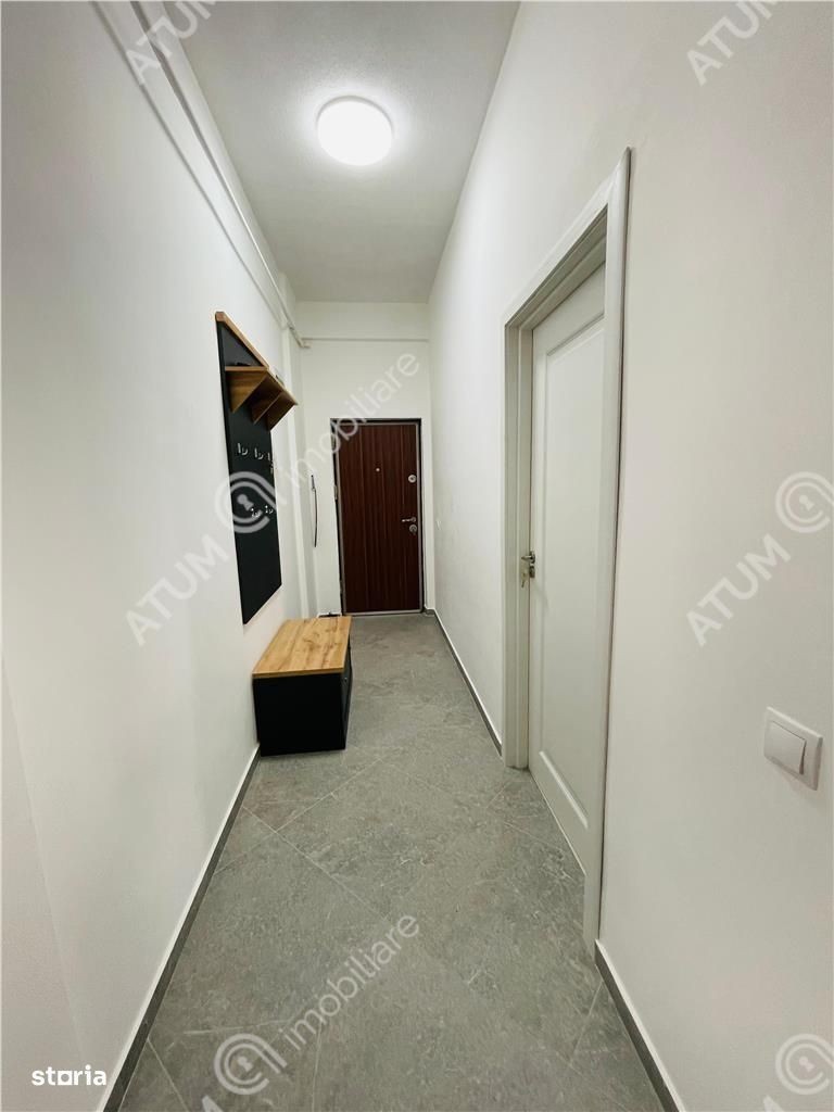 Apartament cu 2 camere decomandate de vanzare in Sibiu, pozitionat la etajul 1 din 2 al unui imobil construit in anul 2024 ce dispune de parcare proprie, acces securizat si izolatii exterioare, situat pe strada Octavian Goga la aproximativ 300 m fata de strada Semaforului si centrele comerciale. Locuinta are 49 mp utili si este compusa din camera de zi cu bucatarie open-space, un dormitor, o baie cu cabina de dus si un hol cu spatiu pentru pantofar si cuier. Separat de suprafata utila apartamentul dispune de un balcon de 5 mp in care accesul se face din camera de zi si dormitor. Apartamentul se vinde complet mobilat si utilat, bucataria dispune de mobilier la comanda cu electrocasnice incorporate, plita pe gaz, cuptor electric, hota, frigider, masina de spalat rufe si TV in camera de zi. Camera de zi este aerisita, cu decoruri mari si multa lumina naturala, aceasta incapere este divizata in 2 zone: de relaxare si de servit masa - ambele fiind complet mobilate. Dormitorul este generos, complet mobilat, iar baia este amenajata modern si dipune de obiecte sanitare de calitate. Valoarea apartamentului este de 95000 euro negociabil, se poate achizitiona si cu credit ipotecar. ID intern: 2714.