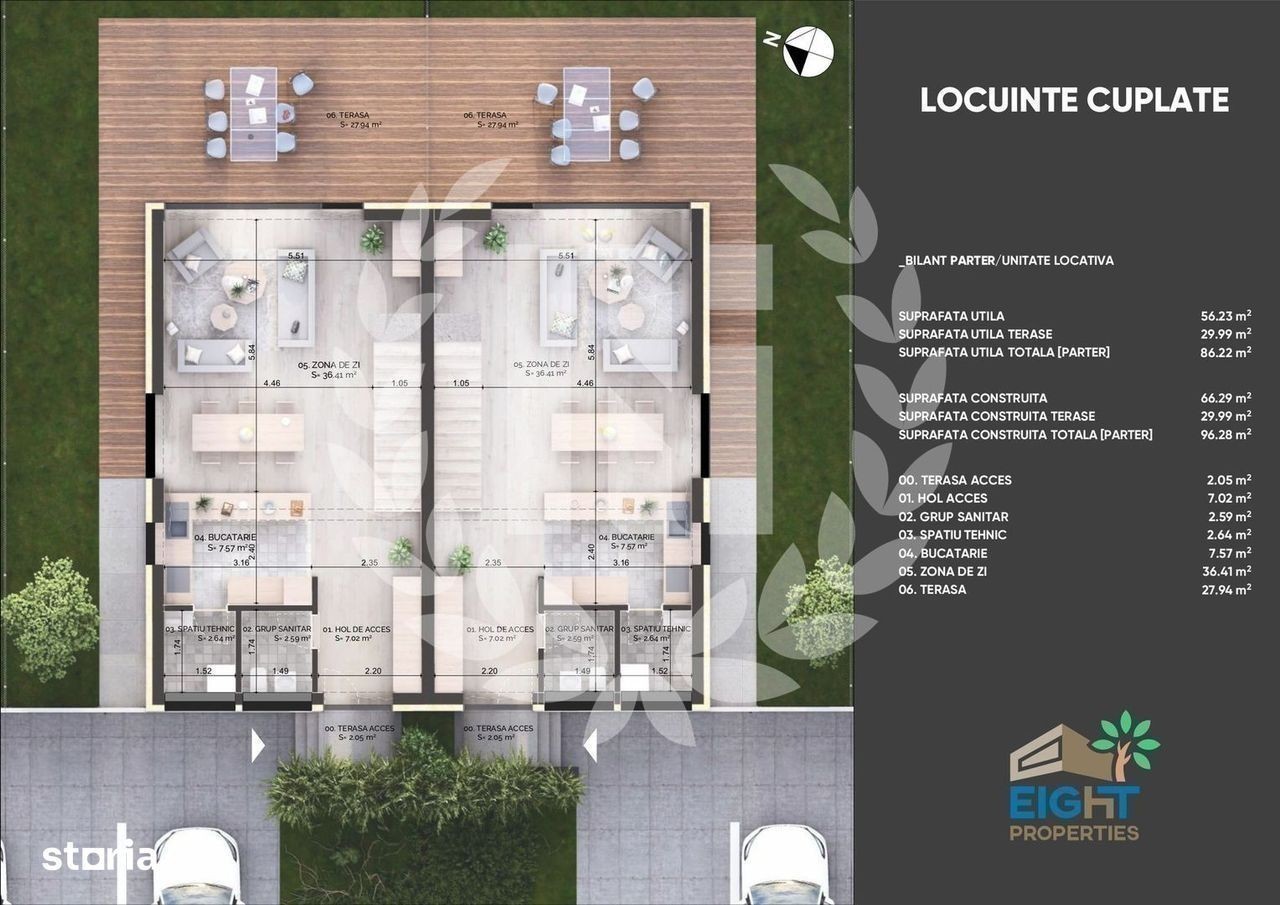 DIRECT Proprietar - COMISION 0 Vilă Tip CUBIC - Baloteşti - Laguna Verde, Parcul Eden land Park 4 camere, suprafaţă utilă 120 mp, suprafaţă curte 150 mp, 2 parcări. Vilă tip duplex, construite cu materiale de înaltă calitate, pentru a oferi siguranță și confort sporit. Situat în Balotești, doar la 15 minute de nordul capitalei, într-o zona verde, armonioasă, departe de stres și de poluare, dar aproape de București. Acces facil din 4 direcții, DN1, A3, Şoseaua Pipera și A0. În apropiere centrele comerciale DN1 Value Center, Lidl, Profi, Mega Image, amplasate la ca 10 minute distanță. Mijloace de transport la numai 300 m. Proiectul este unul modern, arhitectură caselor de tip cub fiind ceea mai eficientă soluție în exploatarea spațiului interior și exterior. Fiecare vila cu regim de înălțime P+1E are suprafața utilă 120 mp utili. Terenul aferent de 260 mp, dintre care de o curte liberă de 150 mp, o terasă de 27 mp și cele 2 parcări care sunt amplasate în zona de acces a vilelor, această poziționare neafectând curtea destinată relaxării. Compartimentarea pe mai multe nivele oferă avantajul separării zonelor de zi și de noapte, și totodată a intimițătii. Parter - dispune de living, bucătărie, spațiu tehnic, grup sanitar cu geam terasă și curte. Etajul 1 - dispune de 3 dormitoare, hol, 2 grupuri sanitare cu geamuri și 1 dressing. Materialele de construcție și finisajele au fost selectate după standarde de calitate care să ofere siguranță și confort. Pentru un viitor lipsit de griji, în confort şi siguranţă, vilele Eight Cubic Residence au fost proiectate încă de la nivelul celui mai mic detaliu: instalaţii şi finisaje premium; energie alternativă; încălzire în pardoseală; structură de rezistenţă beton armat; compartimentare cărămidă; tâmplărie Gealan. Principiul de casă, propus de Eight Cubic Residence însumează cel mai modern şi mai înalt standard al locuinţei şi promovează condiţiile de viaţă sănătoasă, grad ridicat de confort, totul la preţuri avantajoase. Infrastructura complexului este dezvoltată, oferind toate facilitățile necesare pentru un trai modern și confortabil. Un alt aspect important de menționat este că proiectul oferă toate utilitățile necesare: apă și canalizare, gaze naturale, energie electrică și un sistem de conexiune la energie alternativă. Prețul unei vile este de 158.000 EUR, preț pus TVA Pentru a aduce un plus de confort pentru comunitatea noastră, vom construi şi o piscină, zonă barbecue și loc de joacă în care copiii să își petreacă timpul în mijlocul naturii! Mai mult, vă ajutăm, dacă este cazul, să obţineţi rapid şi fără griji finanţarea bancară. *Vila se vinde finisată, la cheie fără mobilier și electrocasnice. *Fotografiile prezentate sunt cu titlu informativ și sunt efectuate în show-room-ul complexului, proiectul se poate realiza la cerere contra cost.