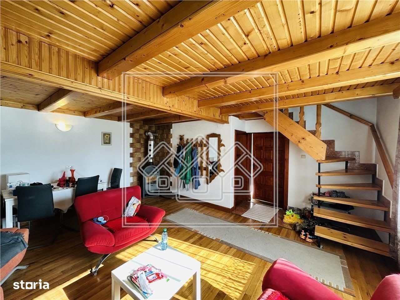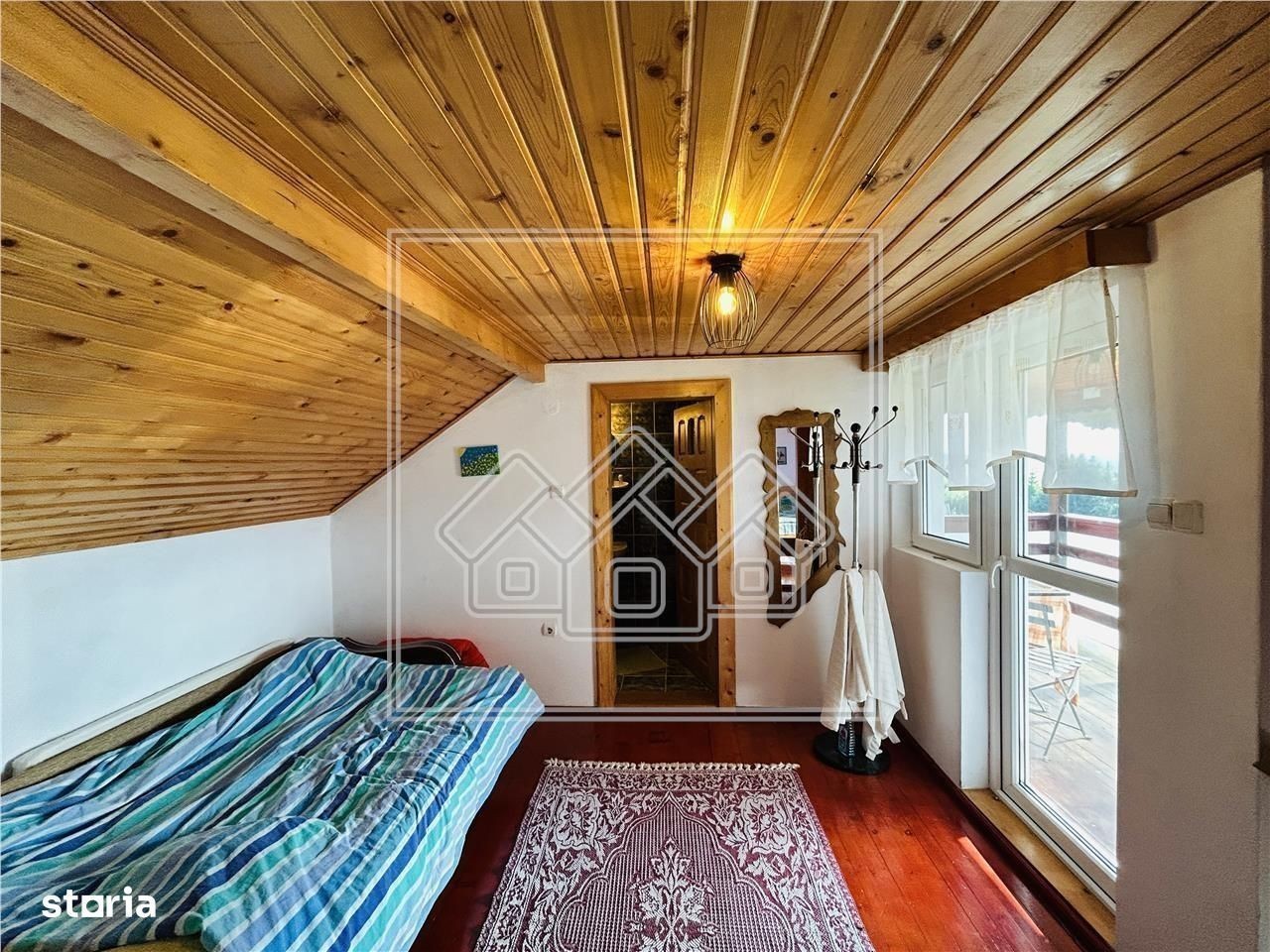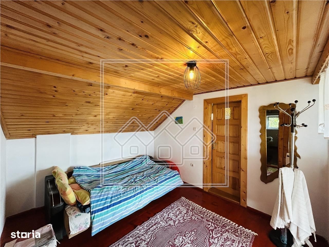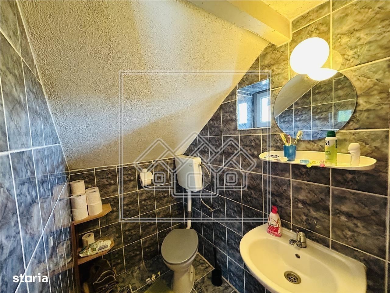 Ofer spre vanzare o casa individuala in Tocile, cu suprafata utila de 100 mp si teren mare de 900 mp. Proprietatea este situata intr-o zona linistita, cu acces facil si priveliste frumoasa asupra naturii. Compartimentare: Parter: hol de acces, living spatios, bucatarie, baie, spatiu tehnic, terasa mare Mansarda: hol, 2 camere, baie, balcon Avantaje: Teren mare de 900 mp, ideal pentru gradina sau spatiu de relaxare Foisor si terasa spatioasa Casa complet mobilata si utilata Zona linistita, aer curat, aproape de Sibiu Parcare disponibila in curte. Casa este intabulata si se poate achizitiona atat cu plata cash, cat si prin credit bancar. ID intern:22492