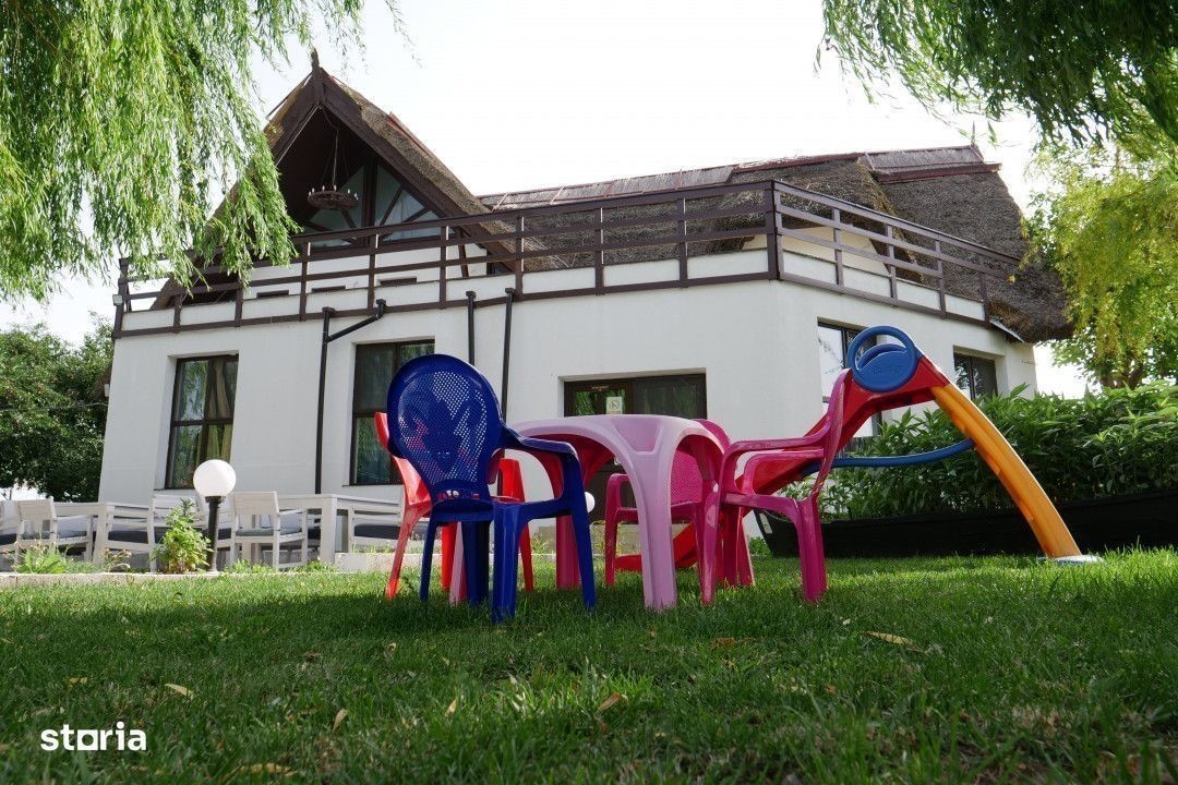 Complex turistic complet funcțional de vânzare în Murighiol, zonă de maxim interes pentru turism în Delta Dunării. Afacere profitabilă, activă, cu istoric și potențial de extindere - perfectă pentru un investitor ce caută un produs „la cheie”. Ce include proprietatea: 19 unități de cazare complet mobilate: - 11 camere duble confort - 3 suite deluxe - 3 apartamente elegante - 2 camere pentru personal + baie 2 restaurante tematice (interior + terase acoperite): - Restaurant în stil british (30 locuri interior + 40 exterior) - Restaurant tradițional cu 40 locuri interior și decor pescăresc - Bucătărie profesională complet echipată, respectând fluxul sanitar și logistic, cu spații de depozitare, cameră frigorifică, spălătorie și cameră tehnică - Terasă exterioară elegantă, cu 60 de locuri în jurul unei fântâni arteziene, înconjurată de salcii - Loc de joacă pentru copii, creat cu gândul la vacanțele în familie - Barcă CORSAR 11+1 pentru excursii în Delta Dunării Wi-Fi de mare viteză, TV, aer condiționat, toate utilitățile racordate Informatii suplimentare: Bază completă de funcționare inclusă în preț: mobilier, lenjerii, veselă, electrocasnice Bar funcțional, zonă de lounge, barcă CORSAR 11+1 pentru excursii în Delta Dunării Licențe și autorizații actualizate (Ministerul Turismului inclus) Afacere fără datorii, vânzare prin preluare de firmă Suită dedicată pentru viitorul proprietar, lângă recepție Teren suplimentar pentru dezvoltare - 4.000 mp cu deschidere la drumul principal - 2 piscine exterioare (adulți + copii) - Certificat de urbanism pentru construcția de cabane - ideal pentru extinderea capacității de cazare și creșterea veniturilor De ce Murighiol? Murighiol este una dintre cele mai accesate porți către Delta Dunării - un colț de lume unic, aflat în patrimoniul UNESCO, unde natura își spune povestea în fiecare clipă. Cu o bază de clienți deja formată, atât locală cât și internațională, locația oferă un mix ideal între escapadă liniștită și turism activ (excursii cu barca, pescuit, observarea faunei). Preț: 1.050.000 EUR (include tot: afacere activă + mobilier + echipamente + teren suplimentar de 4.000 mp cu potențial de dezvoltare pe care se afla 2 piscine exterioare); exista si optiune de achizitie doar a pensiunii si a terenul aferent de 1500mp la pretul de 750.000EUR Contactează-ne pentru a analiza cifrele și a programa o vizionare.