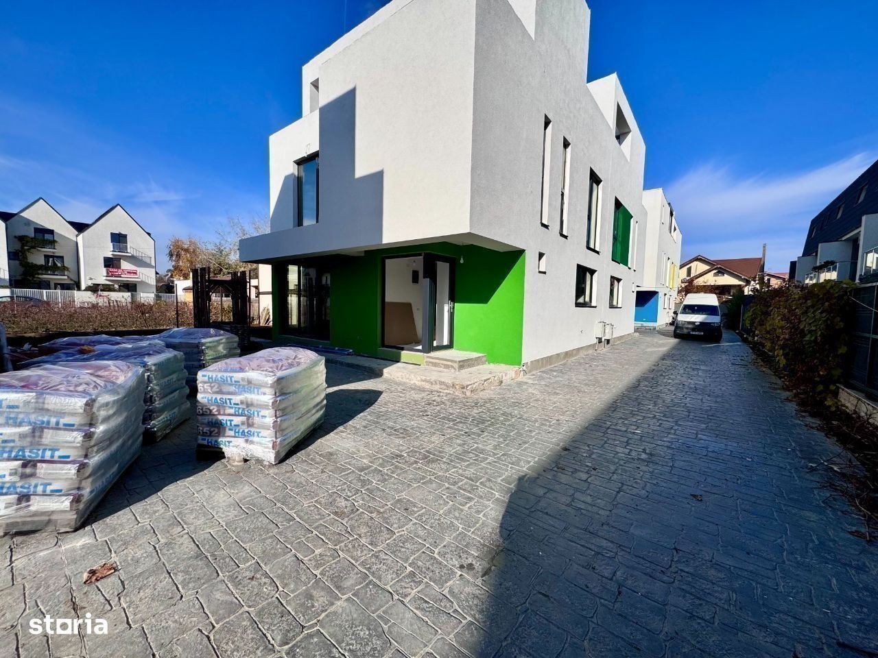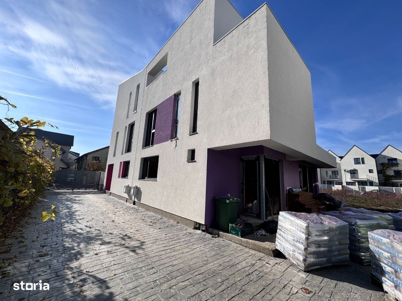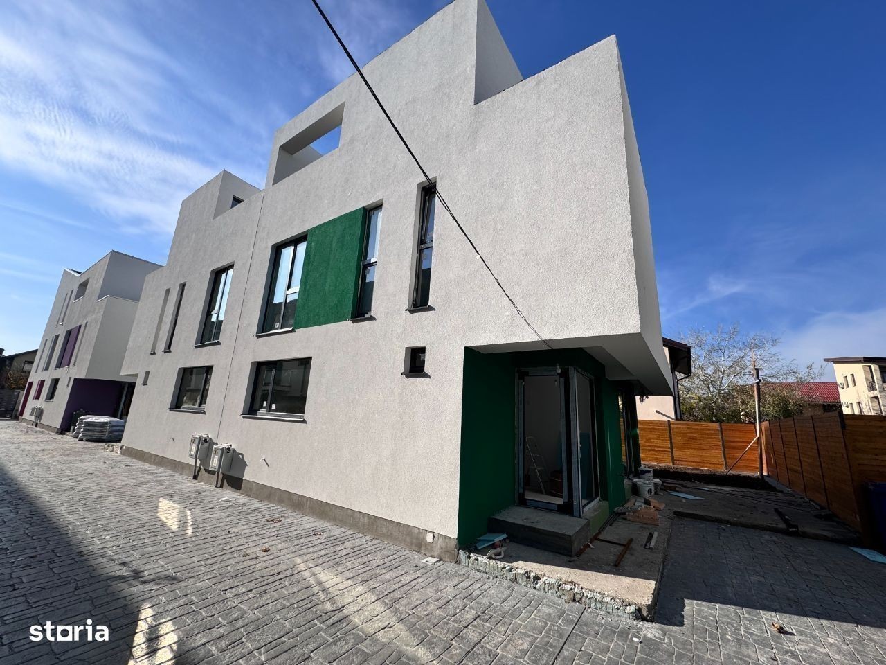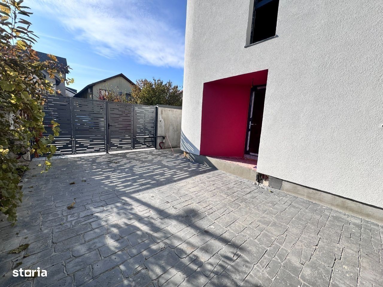 Casa cu arhitectura deosibita situata la 700m fata de primarie. Proiect futurist. Casa se preda complet finisata si racordata la toate utilitatile orasului. Finisaje la alegere din gama premium. Incalzire in pardoseala. Compartimentarea acestei case este urmatoarea: Parter, hol acces, living generos cu iesire in curte, bucatarie inchisa, baie. La etaj sunt 3 dormitoare, 2 bai, balcon, acces catre terasa. Terasa panoramica amenajata ptr relaxare, barbecue, party, loc de joaca, etc. Curte amenajata cu terasa in suprafata de 20 mp, acces auto, gazon. Complex securizat cu 6 case individuale lipite cate 2. Al 8-lea proiect construit in Popesti sub acelasi nume. Pret fara tva. Bogdan Caragea