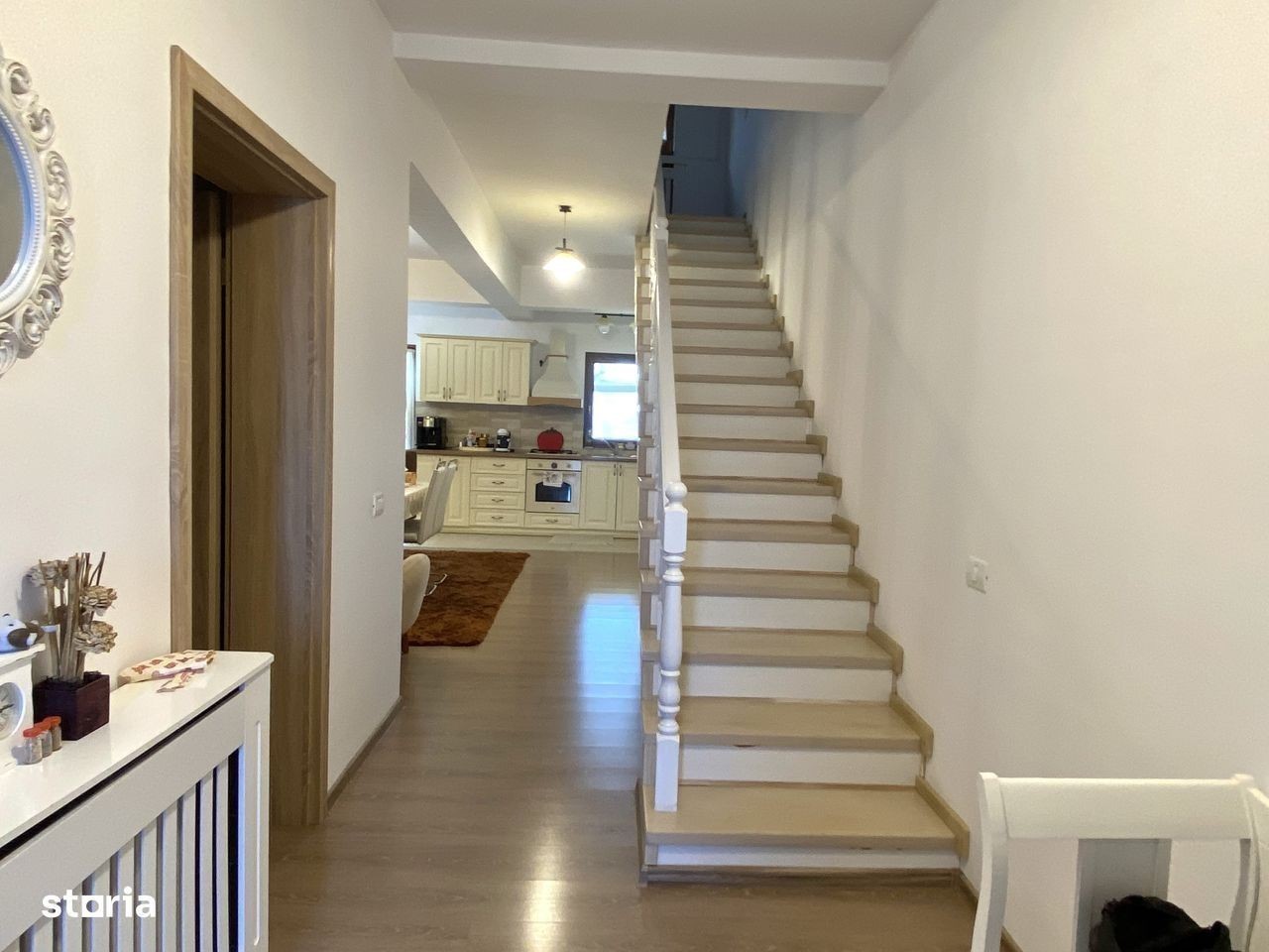COMISION 0%. Vă propunem spre achiziție un duplex cochet, situat pe o stradă asfaltată, cu o suprafață utilă de 114,6 mp, amplasat pe un teren generos de 394 mp, ce oferă intimitate și liniște pentru întreaga familie. La parter, proprietatea dispune de un hol de acces primitor, un living open space luminos împreună cu bucătăria, un dormitor confortabil și o baie.