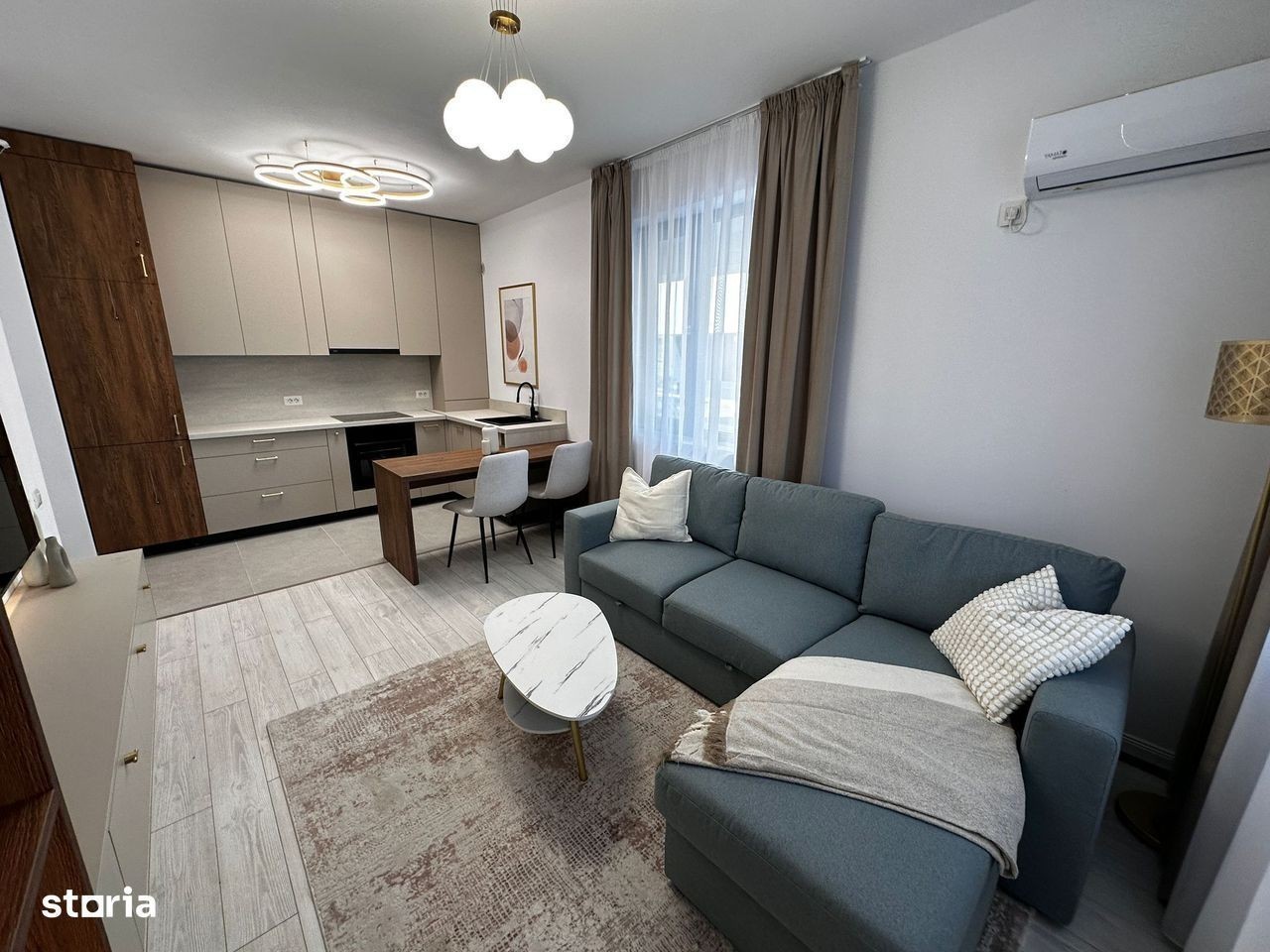 Apartament de 2 camere situat la parterul unui imobil cu 3 etaje din complexul rezidential Luxor Residence din Otopeni, zona 23 August, la doar 3 minute de Brutariea Polen. Compartimentarea este eficienta si include living open-space cu bucataria, dormitor, baie si hol. Livingul este mobilat cu o canapea extensibila si confortabila, aer conditionat, mobilier de tv cu spatiu de depozitare, smart tv si lumini ambientale. Bucataria open-space dispune de multiple spatii de depozitare si este complet mobilata si utilata cu frigider incorporabil, plita, hota, cuptor, masina de spalat vase si un loc de luat masa. Dormitorul ofera un pat cu saltea de 160x200 pentru confort sporit, dulap pentru depozitare si o masa de machiaj multifunctionala, ce poate fi folosita ca noptiera sau birou, fiind dotata cu sertar pentru depozitare. Baia este echipata cu cada si mobilier pentru depozitare, iar holul este prevazut cu dulap, masuta cu sertar si oglinda. Incalzirea se realizeaza prin pardoseala, apartamentul fiind dotat cu centrala proprie. In pretul chiriei lunare este inclus si locul de parcare. Zona ofera acces facil catre Aeroportul Henri Coanda, Baneasa, Padurea Baneasa, Soseaua Bucuresti - Ploiesti, precum si catre multiple magazine, hypermarketuri, restaurante, saloane si zone comerciale. Hai la vizionare !