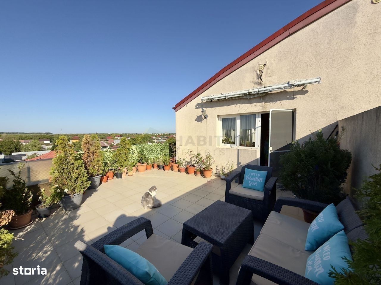 Vă prezentăm un apartament deosebit, situat în zona de nord a Capitalei, în Complexul Galata, cu acces rapid către Șoseaua de Centură, A3 și Bd. Eroilor. Detalii apartament: • Etaj 5/5, cu pod pe toată suprafața apartamentului, ce poate fi folosit ca spațiu de depozitare • Suprafață totală: 107 mp • Terasă deschisă de 30 mp, amenajată cu masă și fotolii - perfectă pentru relaxare • Balcon închis de 10 mp, ce poate fi folosit ca spațiu suplimentar de depozitare • Compartimentare practică și spațioasă Clădire: • Construită în 2009 • Imobil bine întreținut și liniștit Dotări: • Centrală termică proprie • Aer condiționat • Se vinde complet mobilat și utilat • Un loc de parcare inclus în pret Un apartament luminos, generos ca spațiu, cu terasă și balcon, gata de mutare imediată.