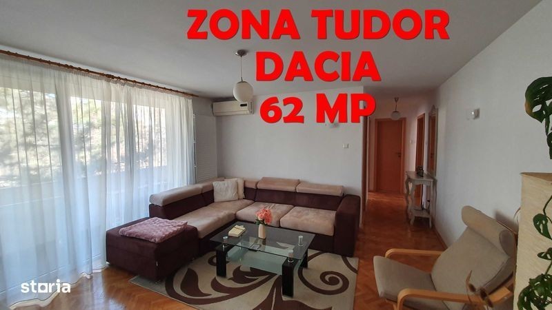 Persoana fizica inchiriez pe termen lung apartament cu 3 camere in Tudor zona Dacia. Zona linistita, ferita de tarfic si de praf, aproape de magazine, scoala si parc. Suprafata 62mp - izolat termic. Centrala termica in condensatie instalata in Ianuarie 2024. Bucatarie complet mobilata: masina de spalat vase, cuptor electric, plita pe gaz, hota, combina frigorifica. Camara pe balcon - suprafata de 1.12 mp Living suprafata de 16.5 mp dotat cu aer conditionat si TV. Dresing suprafata de 1.8 mp perfect compartimentat pentru depozitarea hainelor. Camera mica - 10.4 mp Dormitor 16 mp - cu pat matrimonial si consola de makeup. Baie 4mp cu dus si rigola Se inchiriaza doar pe baza de contract pe termen lung. Se percepe o chirie drept garantie la semnarea contractului.