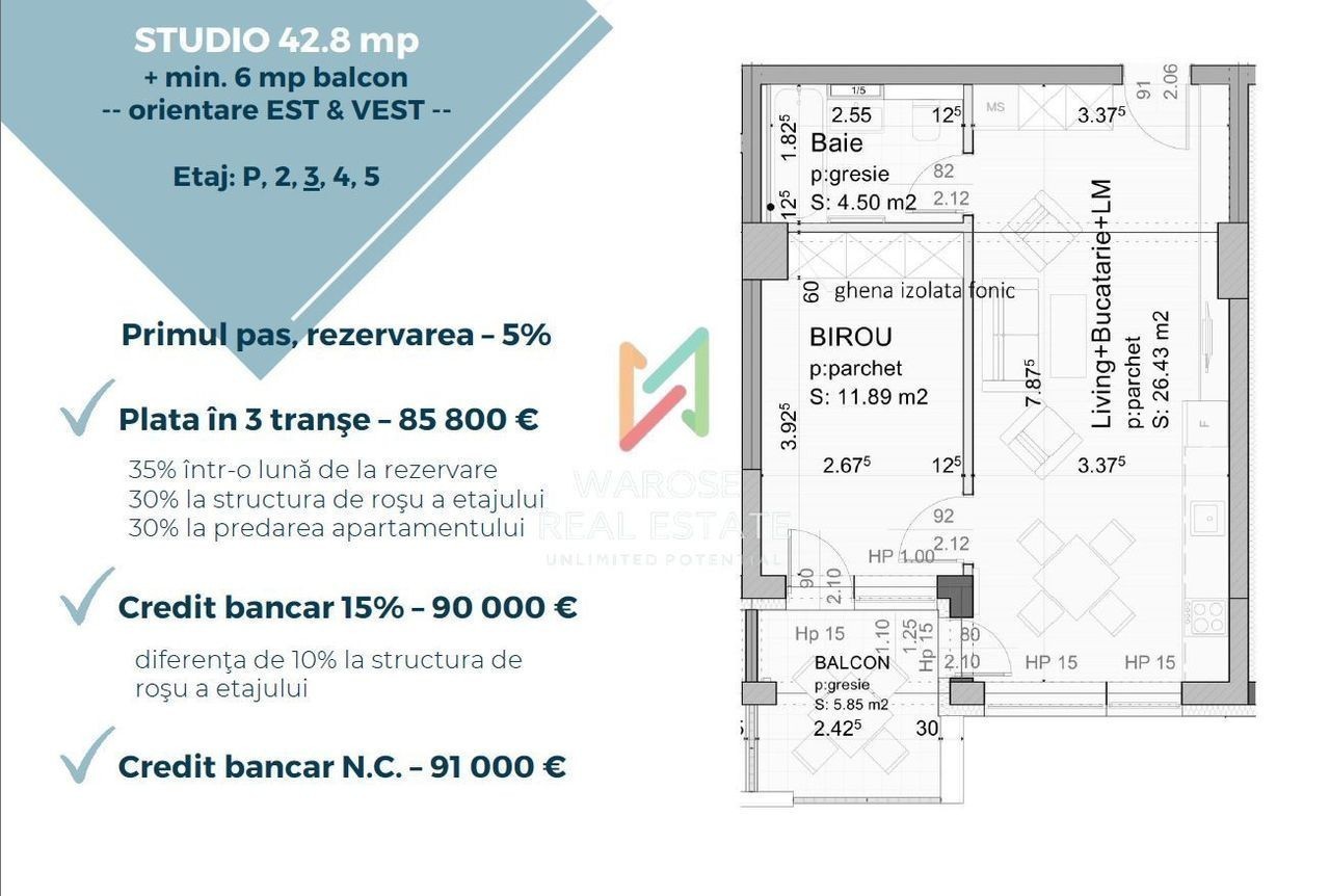 Descoperă un proiect rezidențial nou, modern și complet echipat, situat într-una dintre cele mai căutate zone din Brașov - Tractorul. Cu un design contemporan, facilități premium și multiple opțiuni de compartimentare, ai acum ocazia să îți alegi locuința perfectă. Avantaje care fac diferența • Proiect dezvoltat etapizat, cu termene de predare programate pentru 2027 și 2028 • Construcții realizate cu materiale de calitate: zidărie integrală din cărămidă, izolație termică, tâmplărie PVC cu geam tripan • Posibilitate de integrare a sistemelor smart home (control lumini, temperatură, audio) • Peste 10.000 mp de spații verzi amenajate, cu: • Terenuri multisport (fotbal, baschet, tenis) • Locuri de joacă pentru copii • Aleile de alergare, zonă de relaxare cu grill, jacuzzi,șemineu și pergole • Zonă monitorizată video permanent • Locație excelentă: acces facil către Coresi, transport public, școli, farmacii și centre comerciale • Diversitate de compartimentări, cu suprafețe echilibrate și finisaje de calitate superioară Apartamente disponibile de la 85.800 EUR - 2 camere Tip Studio, 43 mp utili + balcon 6 mp PRETURILE INCLUD TVA DE 21% ! Acestea sunt doar câteva dintre ofertele noastre disponibile, prețurile putând varia în funcție de perioada de predare. Pentru informații complete și oferte actualizate, nu ezitați să ne contactați. • 0% comision pentru agenție - colaborezi direct cu noi, fără costuri suplimentare din partea ta. • 0% costuri pentru consultanța de creditare - lucrăm cu un broker de credite dedicat, care te ajută gratuit să obții cea mai bună soluție de finanțare. Alege agenția imobiliară Warose pentru profesionalism, transparență și suport complet pe tot parcursul tranzacției - suntem alături de tine de la prima vizionare până la finalizarea contractului, oferindu-ți cele mai bune oferte și consiliere personalizată adaptată nevoilor tale.