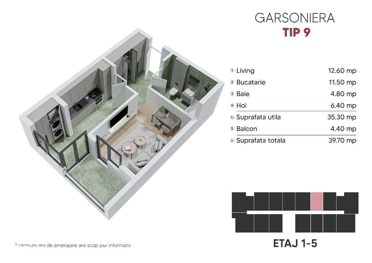PROMOTIE! Garsoniera spatioasa 39mp, Metrou Berceni 5-7min