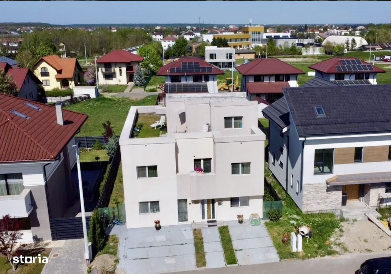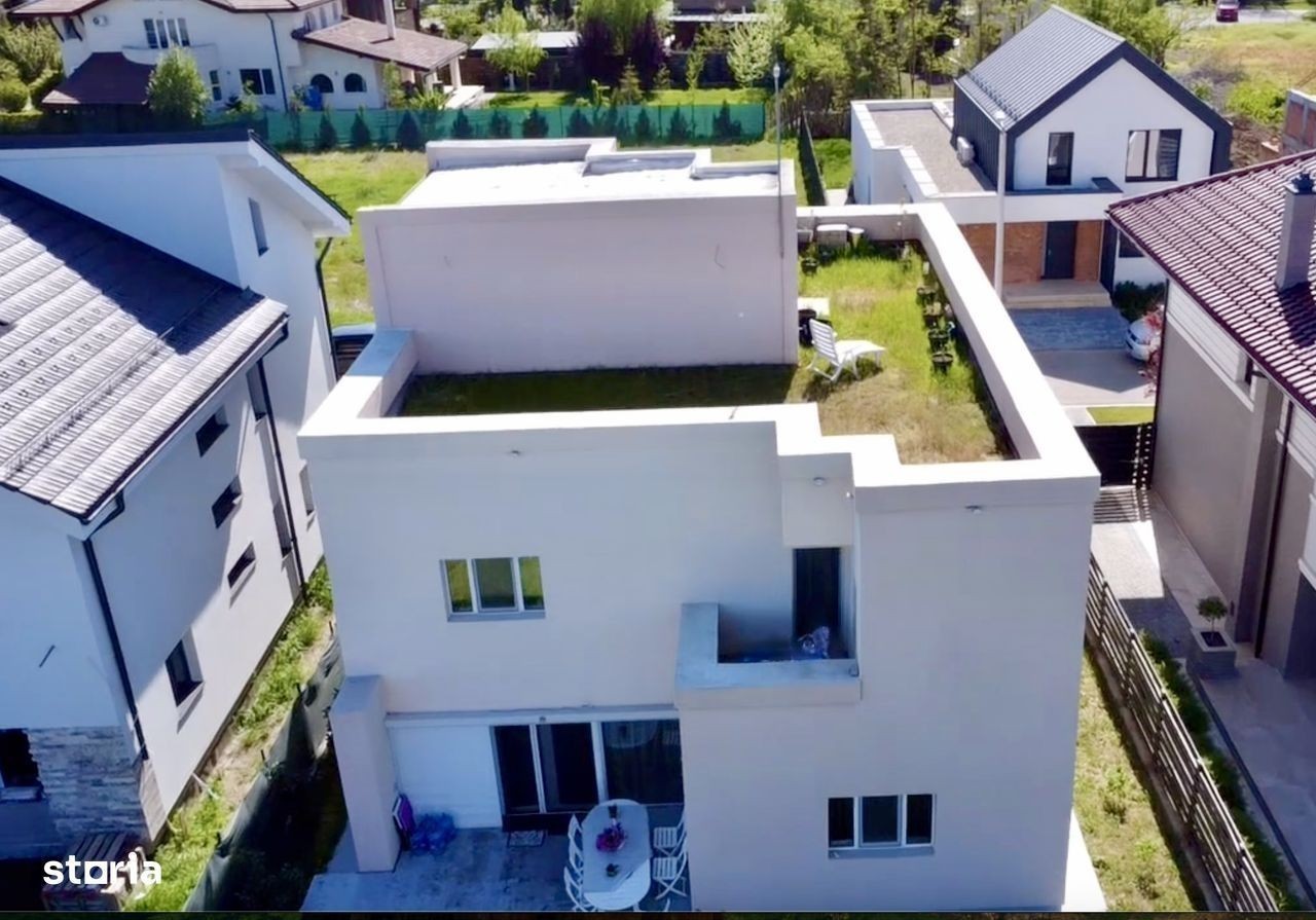 Oportunitate in Paradisul Verde, o vila pentru o familie numeroasa sau pt cei care au nevoie de home office. Vila a fost construita in 2021 si acomodeaza home office, 2-3 copii, bunici si sau bona. Parter: