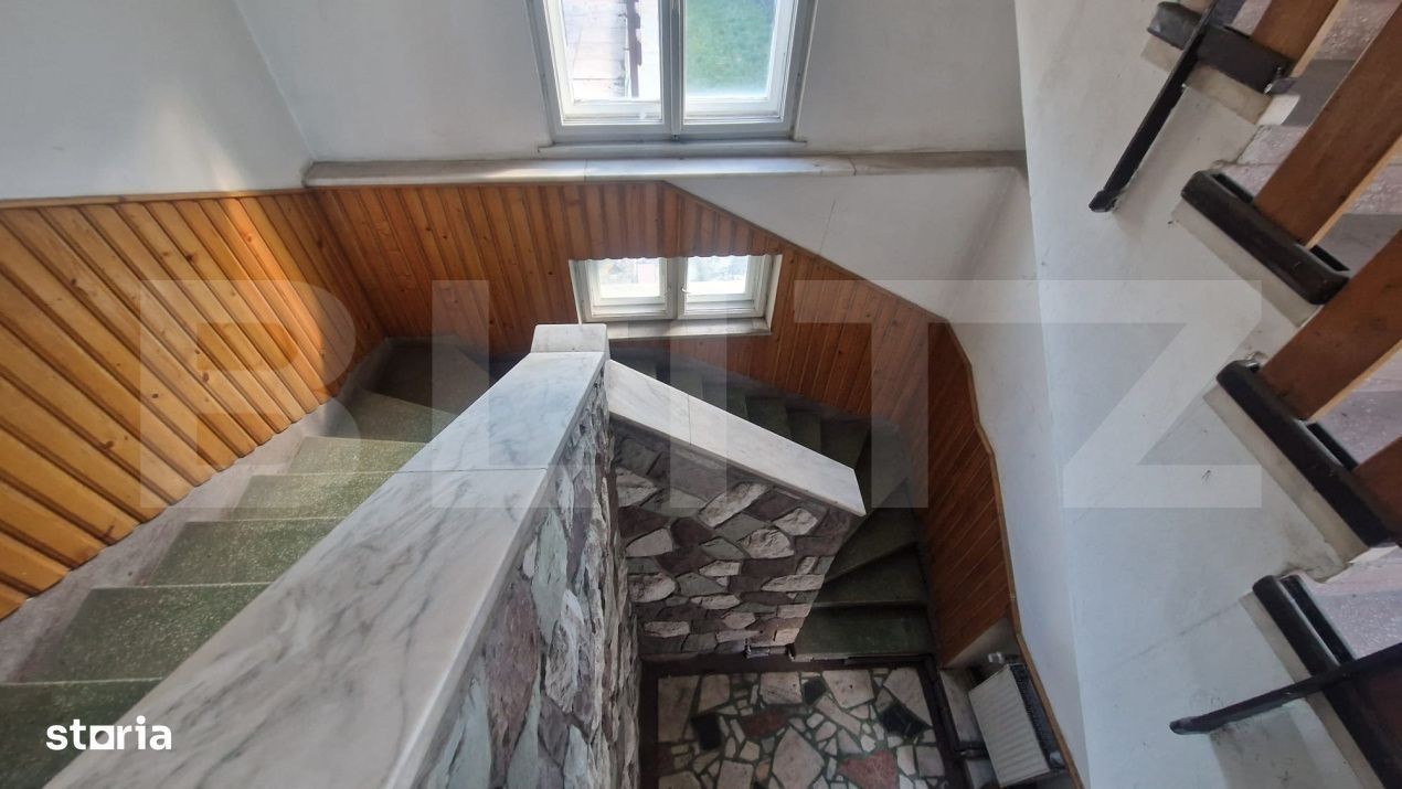 Blitz propune spre vânzare, o casa cu o suprafață utilă de 200 mp și este ideală atât pentru locuință, cât și pentru birouri sau spațiu mixt, datorită amplasării sale pe o arteră principală, foarte circulată, aproape de punctele de interes din zonă. Proprietatea dispune de 6 camere spațioase, 2 bucătării complet funcționale, 2 băi, terase și balcoane care oferă lumină naturală din abundență și spațiu pentru relaxare. Construcția este realizată din cărămidă și beton, fiind extrem de solidă și bine întreținută. La demisol se află 2 camere generoase, fiecare de câte 16 mp, potrivite pentru birouri, spații de depozitare sau hobby-uri. Casa este echipată cu 2 centrale termice pe gaz, asigurând confortul termic pe tot parcursul anului. Suprafața totală a terenului este de 1053 mp, ceea ce oferă spațiu suficient pentru curte, grădină sau alte amenajări. Proprietatea include și un garaj, perfect pentru protejarea mașinii. Are toate utilitatiile. Vă aștept cu drag la vizionare!