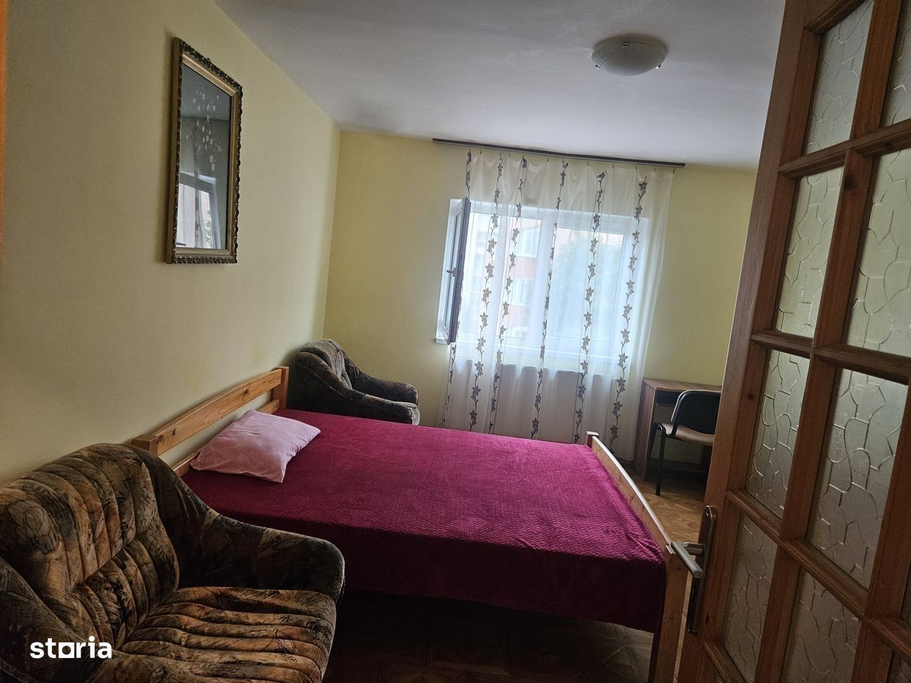 Oferim spre inchiriere un Apartament de 3 camere zona Ciucas,str Ciprian Porumbescu,decomandat,etaj 3,are termopane,centrala termica,mobilat si utilat, 2 grupuri sanitare,liber pt inchiriat,parcare