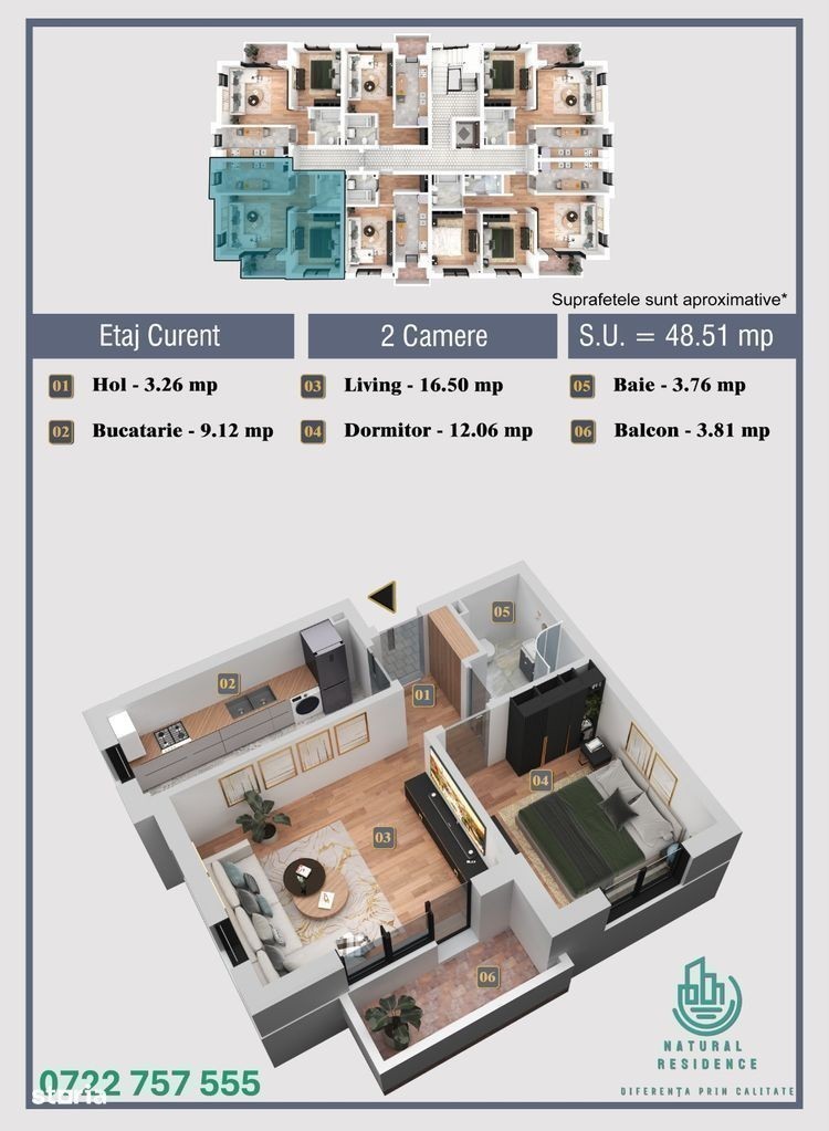PRETUL AFISAT INCLUDE TVA ! APARTAMENTELE SE VAND NEMOBILATE ! Natural Residence este un proiect rezidential nou, gândit pentru confortul și siguranța locatarilor. Localizat in zona de vest a Bucurestiului, complexul respecta toate cerintele actuale de confort si pret.