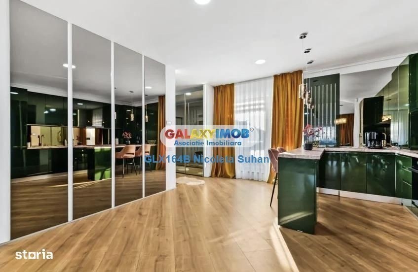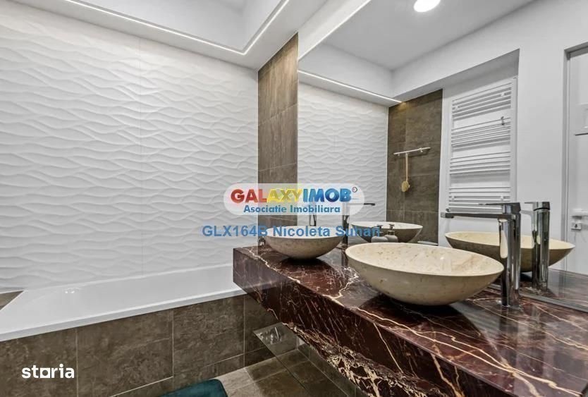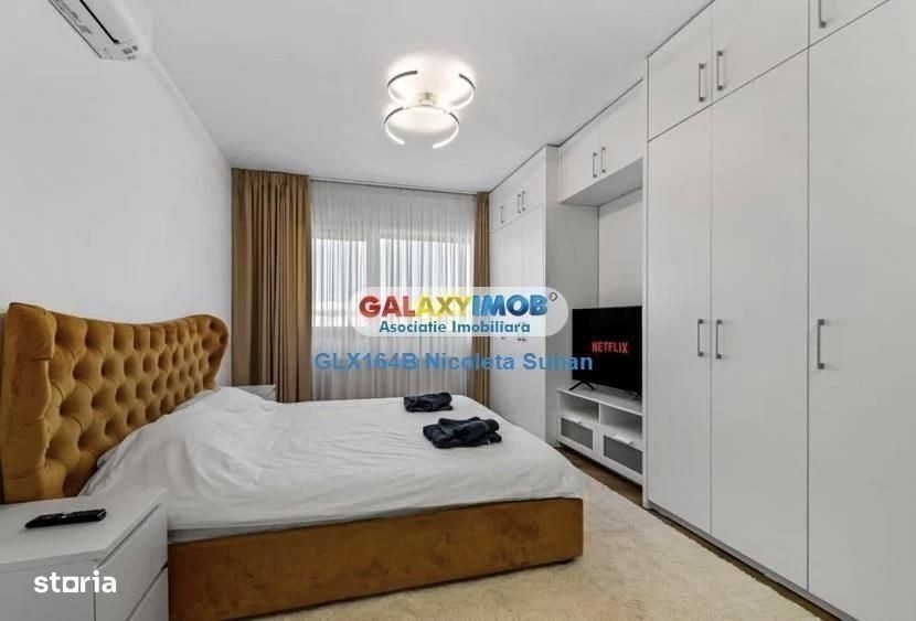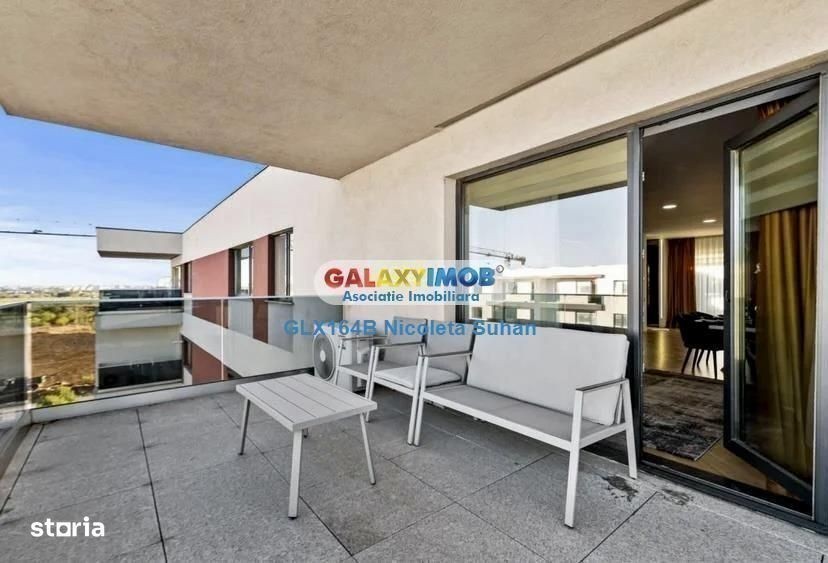 Apartamentul este mobilat si utilat complet, situat la etajul 8 8, avand o suprafata utila de 190 mp, fiind compus dintr-un living spatios, bucatarie open-space complet utilata si mobilata, 2 dormitoare si 2 bai moderne. Apartamentul dispune de centrala termica proprie, aer conditionat, monitorizare video si paza 24 7, 2 locuri de parcare subterane si boxa. Avans 1 luna + 1 luna GARANTIE Apartamentul este liber. Informatii eficienta energetica: Clasa energetica: A Consumul de energie primara: Indicele de emisii echivalent CO2: Consum de energie din surse regenerabile: