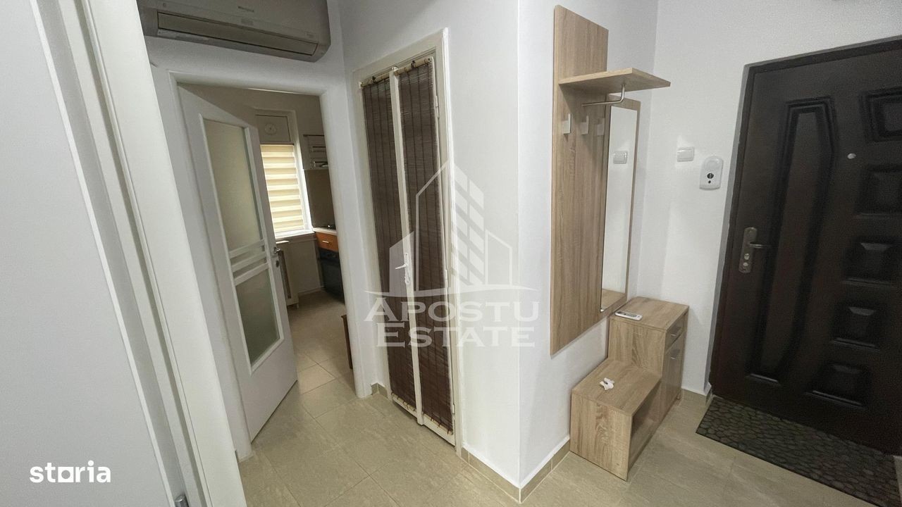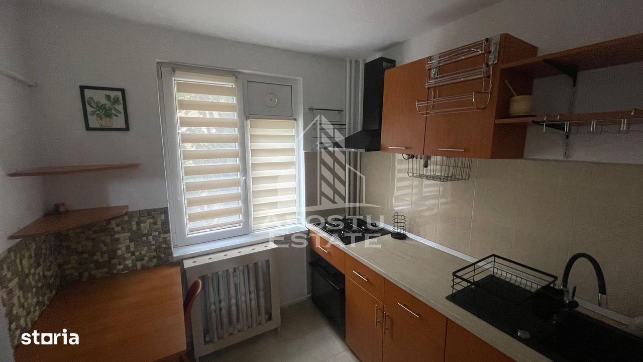 APOSTU ESTATE vă propune spre închiriere un apartament spațios și elegant, cu 2 camere, situat într-o zonă liniștită și bine conectată din Timisoara, ideal pentru cupluri Suprafață utilă: 48 mp Compartimentare eficientă: Hol de acces generos Bucătărie complet mobilată Living luminos și spațios Dormitor matrimonial mobilat Baie principală cu cadă și geam pentru ventilație naturală Confort și facilități: Confortul termic este realizat prin termoficare Cheltuieli de intretinere mici Apartamentul este complet mobilat și utilat Localizare: Zona Dacia - liniște, acces facil spre oraș, în apropiere de magazine, școli și mijloace de transport în comun. Ideal pentru: O singura persoana Cupluri Profesioniști care lucrează remote sau au nevoie de birou acasă Preț chirie: [400 Euro] Programează o vizionare! ID intern: CP2221437
