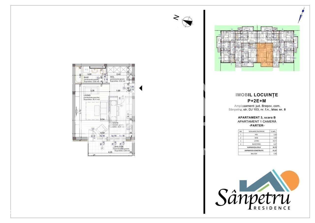 garsonieră spațioasă de 36,7 mp, situată într-un cartier nou și modern, în imediata apropiere a viitorului Mall Shop Park. - Finalizată și intabulată - actele sunt pregătite pentru vânzare - Mobilată complet - gata de mutat sau de închiriat imediat -Zonă liniștită, cu acces rapid la mijloace de transport, magazine și alte facilități - Ideală pentru locuit sau investiție (chirie) Parcarea este inclusă in preț. Locație: Cartier rezidențial Strip Mall by Sânpetru Residence Suprafață utilă: 36,7 mp Preț: 79.500 EURO Contact: