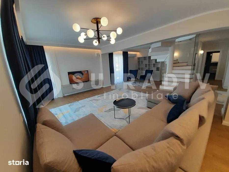 Suiradiv Imobiliare vă propune spre închiriere un penthouse spectaculos, cu 3 camere, situat în exclusivistul ansamblu Bonjour Residence, din cartierul Buna Ziua - o locuință care redefinește standardele luxului urban. Amplasat la ultimele două niveluri ale unui imobil modern cu 7 etaje, acest apartament de tip duplex impresionează prin designul său rafinat, suprafața generoasă și priveliștile deosebite asupra orașului. Cu o suprafață utilă de 150 mp și două terase circulare ce depășesc 200 mp în total, penthouse-ul oferă o experiență de locuire unică, la cele mai înalte standarde.
