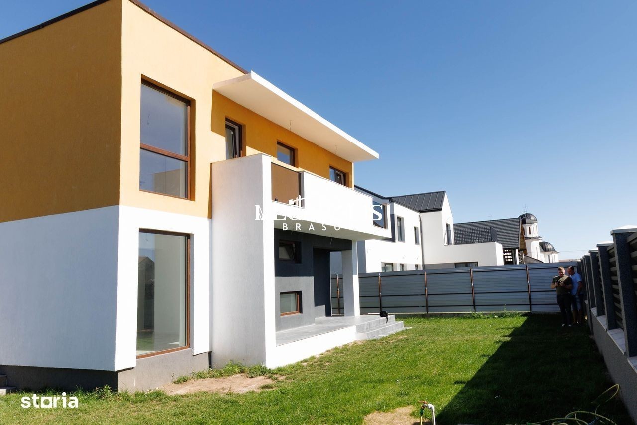 Se vinde casă în stil mediteranean în Harman, zona nouă! Casă modernă și spațioasă, perfectă pentru tine și familia ta! Suprafață: 120 mp utili, curte de 415 mp Compartimentare: Parter: dormitor, living, bucătărie, hol, cameră tehnică, baie Etaj: dormitor matrimonial cu baie si dressing separat + 2 dormitoare, hol si baie comuna Detalii: Toate utilitățile branșate Casă intabulată, construită în 2024, finalizată în 2025 Se acceptă credit Pentru detalii sau vizionari suna-ti la numarul afisat sau scrieti-mi pe whatsapp Contact: