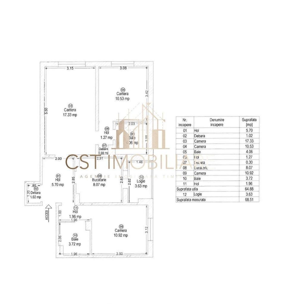 CST imobiliare ofera spre vânzare - Apartament spațios cu 3 camere pe Calea Circumvalațiunii Locație: Etaj 7/8, Calea Circumvalațiunii - zonă excelent conectată la transport, școli, grădinițe, magazine și spații verzi. Suprafață totală: 68 mp Compartimentare: 3 camere luminoase 2 băi funcționale Bucătărie generoasă 2 debarale pentru depozitare Holuri spațioase Dotări și îmbunătățiri: Centrală proprie pe gaz 3 aparate de aer condiționat Instalație electrică complet refăcută Coloane de apă și canalizare schimbate recent Bucătărie utilată Puncte forte: Două băi - confort sporit pentru familie și oaspeți Spații de depozitare suplimentare Utilități și instalații modernizate Compartimentare ideală pentru intimitate și funcționalitate Ideal pentru familie sau investiție. Pentru detalii suplimentare și programarea unei vizionări, echipa CST Imobiliare vă stă la dispoziție.