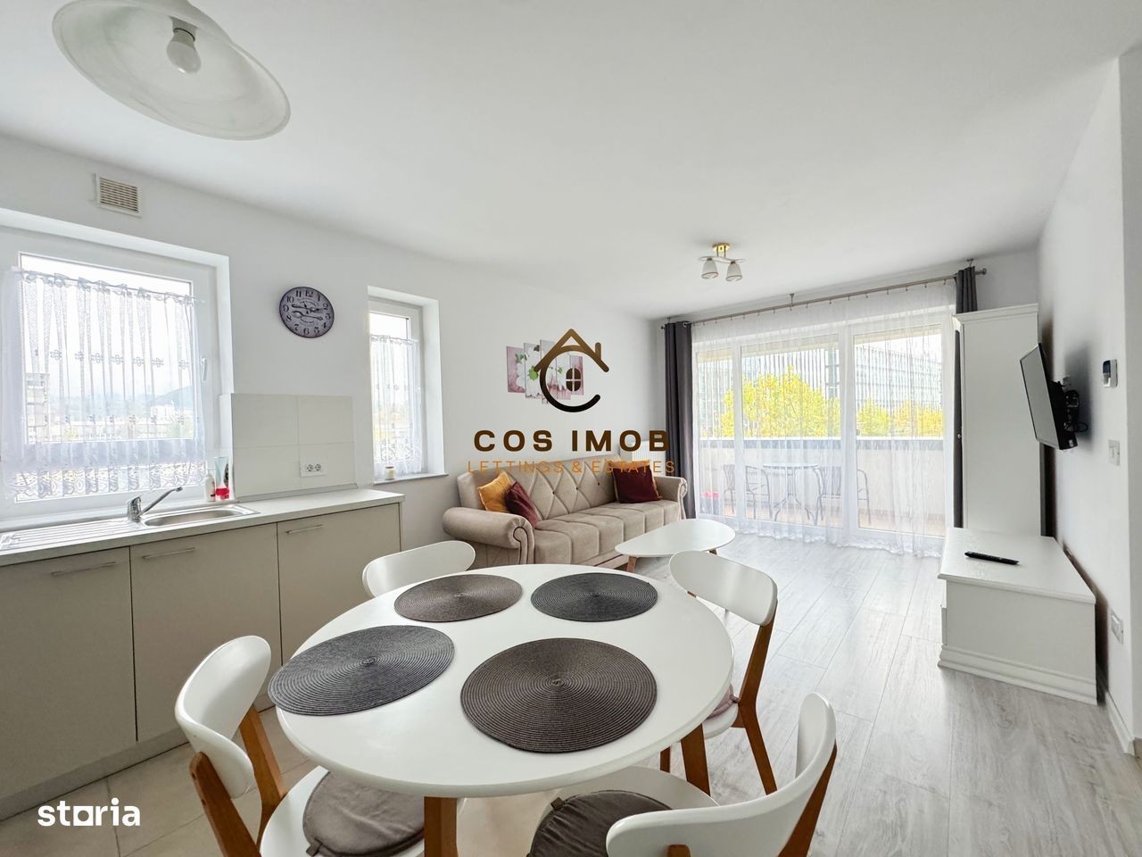 Închiriere Apartament 2 camere tip studio in Kasper Coresi, zona Tractorul. Agenția Cos Imob oferă spre închiriere un apartament cu 2 camere, cu bucătărie open-space în complexul Kasper Coresi ideal pentru cupluri sau persoane singure.
