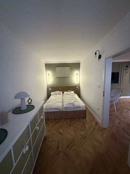 Acest apartament de 45mp se află la etajul 3 și are finisaje de înaltă calitate. Compartimentarea este nedecomandată, ideală pentru confort. Podelele sunt din lemn, iar baie este modernă, cu finisaje de calitate superioară. Camera de zi are mobilier contemporan și uși din lemn masiv. Bucătăria are finisaje elegante și uși din lemn solid. Apartamentul este ideal pentru persoanele care caută un spațiu confortabil și modern. Locuința se află într-o zonă centrală, aproape de multiple opțiuni culturale și de divertisment. La doar câteva minute se află muzee, parcuri și locuri de joacă pentru copii. Sunt disponibile restaurante, cafenele și baruri în apropiere, ideale pentru socializare. În plus, școli, grădinițe și universități sunt ușor accesibile, perfect pentru familii și studenți. Zona este bine deservită de transport public, cu stații de autobuz și tramvai aproape. Magazine, supermarketuri și centre comerciale se află în apropiere, facilitând shopping-ul zilnic. Există și facilități de sănătate, precum clinici și farmacii, la doar câteva minute distanță. Nu rata ocazia de a închiria această locuință confortabilă și modernă. Contactează-ne pentru detalii și vizionări!