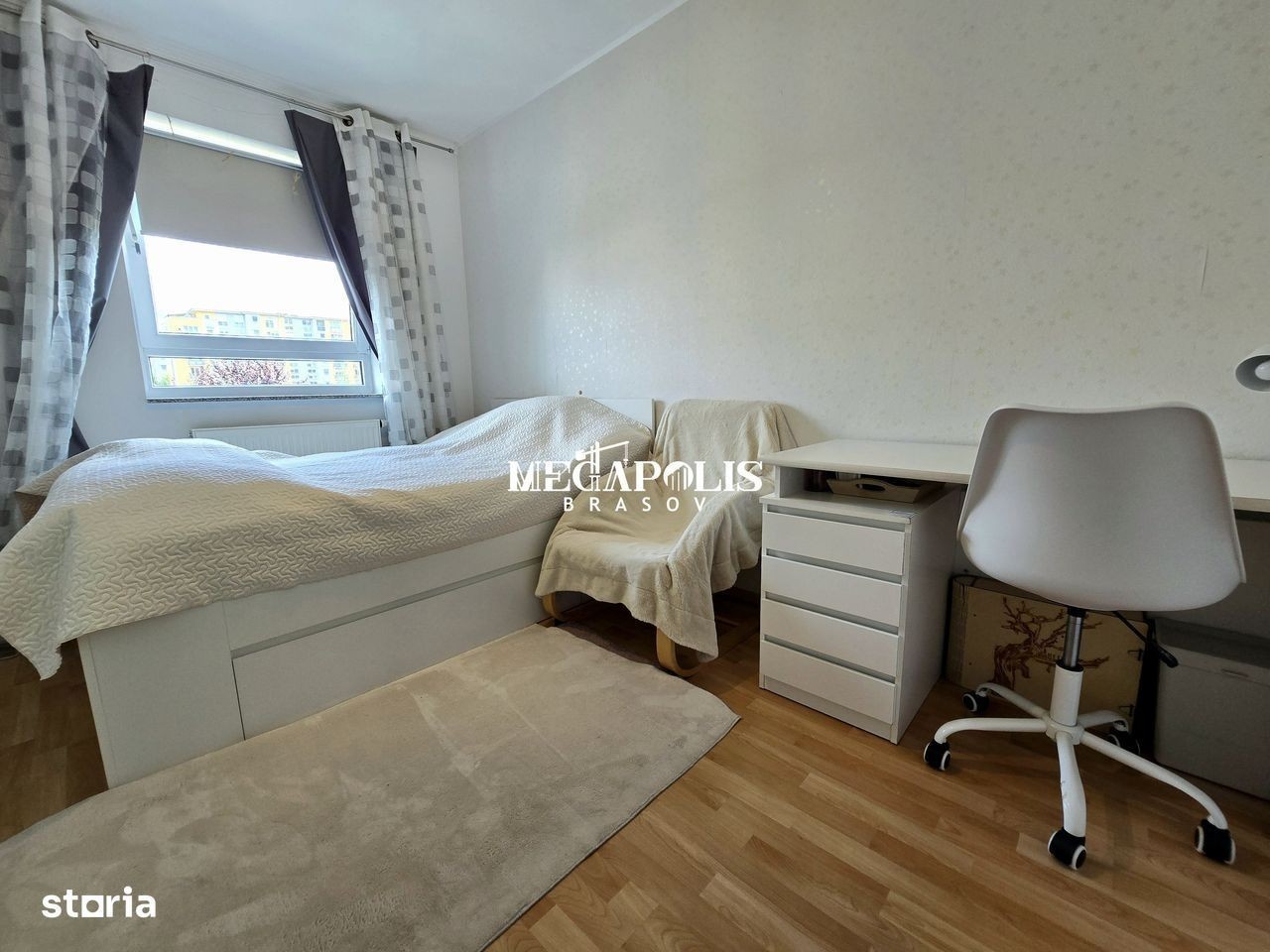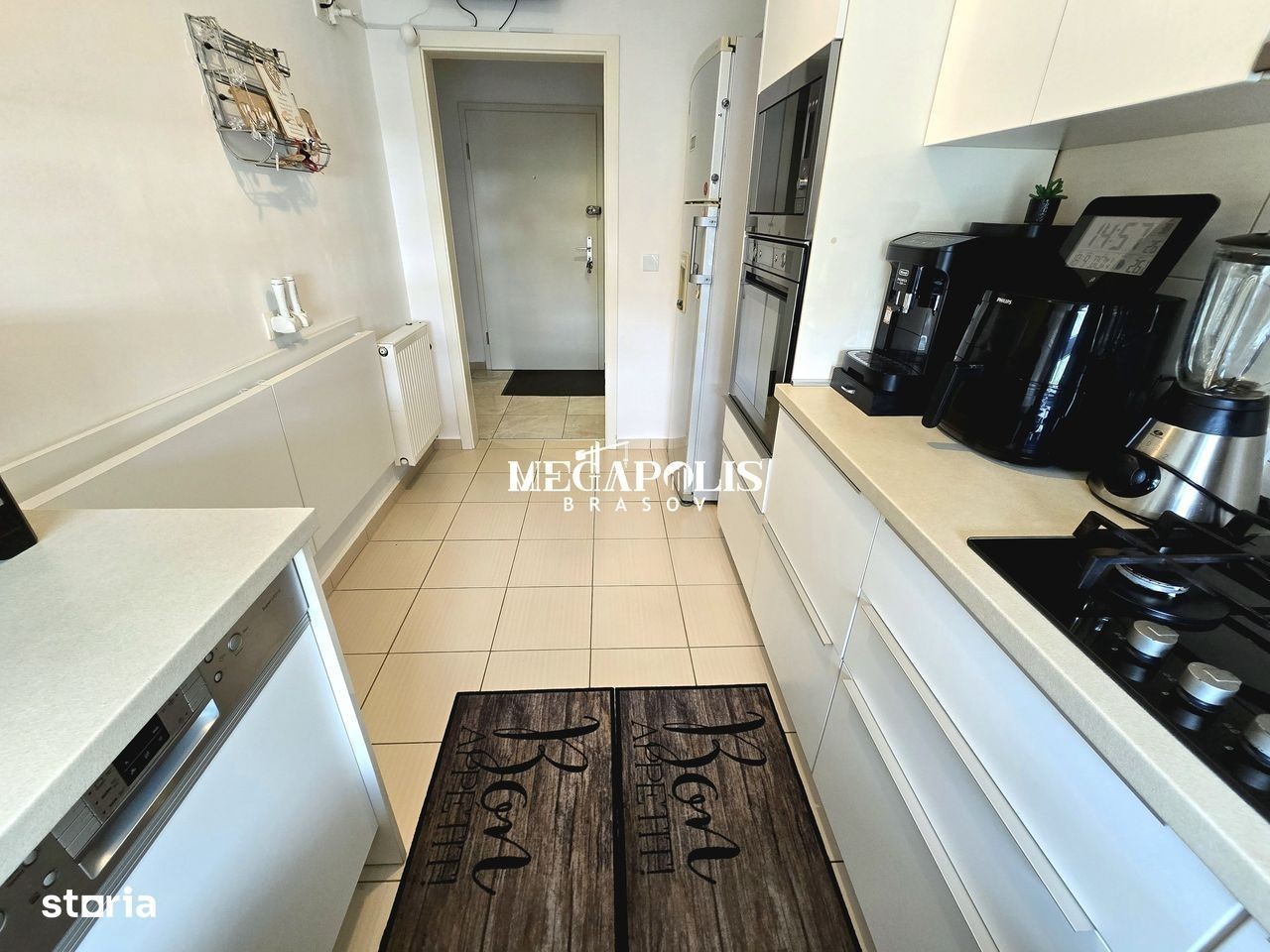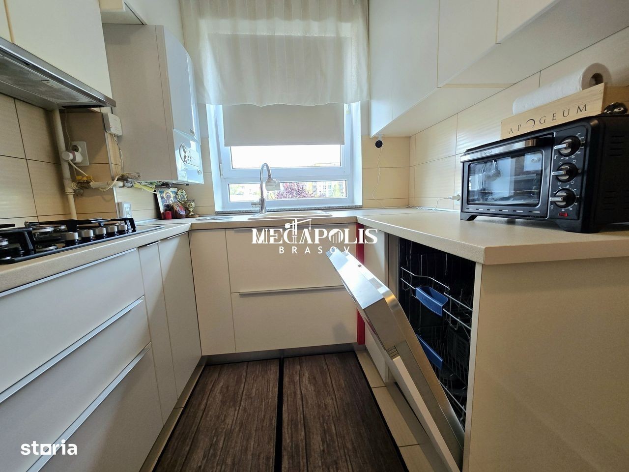 Megapolis Brașov vă propune spre vânzare un apartament modern cu 3 camere, situat în ansamblul rezidențial Avantgarden Brașov, o zonă apreciată pentru liniște, siguranță și proximitatea față de facilități. Proprietatea se află la etajul 2/8 (etaj intermediar, avantajos), într-un bloc construit în 2012, și se vinde complet mobilată și utilată, conform pozelor. Detalii apartament: Suprafață utilă: 72 mp + 2 balcoane, suprafață totală 78,74 mp Compartimentare: decomandată Living spațios și luminos Dormitor 1 (16,7 mp): prevăzut cu balcon închis cu sistem glisant panoramic (panouri de sticlă culisante, ce permit transformarea spațiului în balcon închis sau deschis, cu izolare termică sporită). În plus, camera are spațiu pregătit pentru montarea unui șemineu decorativ sau electric. Dormitor 2 (10,95 mp): amenajat în prezent ca cameră pentru copil Dormitor 3 (12,22 mp): dotat cu balcon deschis, vedere spre zona verde Bucătărie complet utilată și mobilată: frigider, cuptor electric, cuptor cu microunde, mașină de spălat vase, masă rabatabilă (electrocasnicele mici nu sunt incluse) 2 băi moderne, complet echipate Hol spațios + dressing pentru depozitare eficientă Dotări suplimentare: sistem anticalcar/dedurizator pentru protecția instalațiilor Alte beneficii: Aer conditionat Loc de parcare inclus Boxă pentru depozitare Vedere plăcută spre zona verde, apartamentul nu este situat pe colț Încălzire cu centrală termică proprie și geamuri termopan Ansamblu rezidențial modern, cu acces rapid la transport în comun, școli, grădinițe, magazine și zone de relaxare Avantaje: Apartament luminos, poziționat la etaj intermediar Compartimentare practică și spații generoase Ideal pentru familii sau pentru cei care își doresc un apartament modern, complet utilat, într-o zonă apreciată Preț vânzare: 198.000 € Se acceptă plata prin credit bancar Comision 0 pentru cumpărător