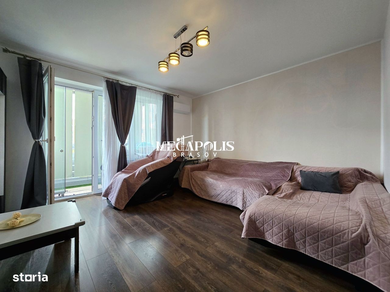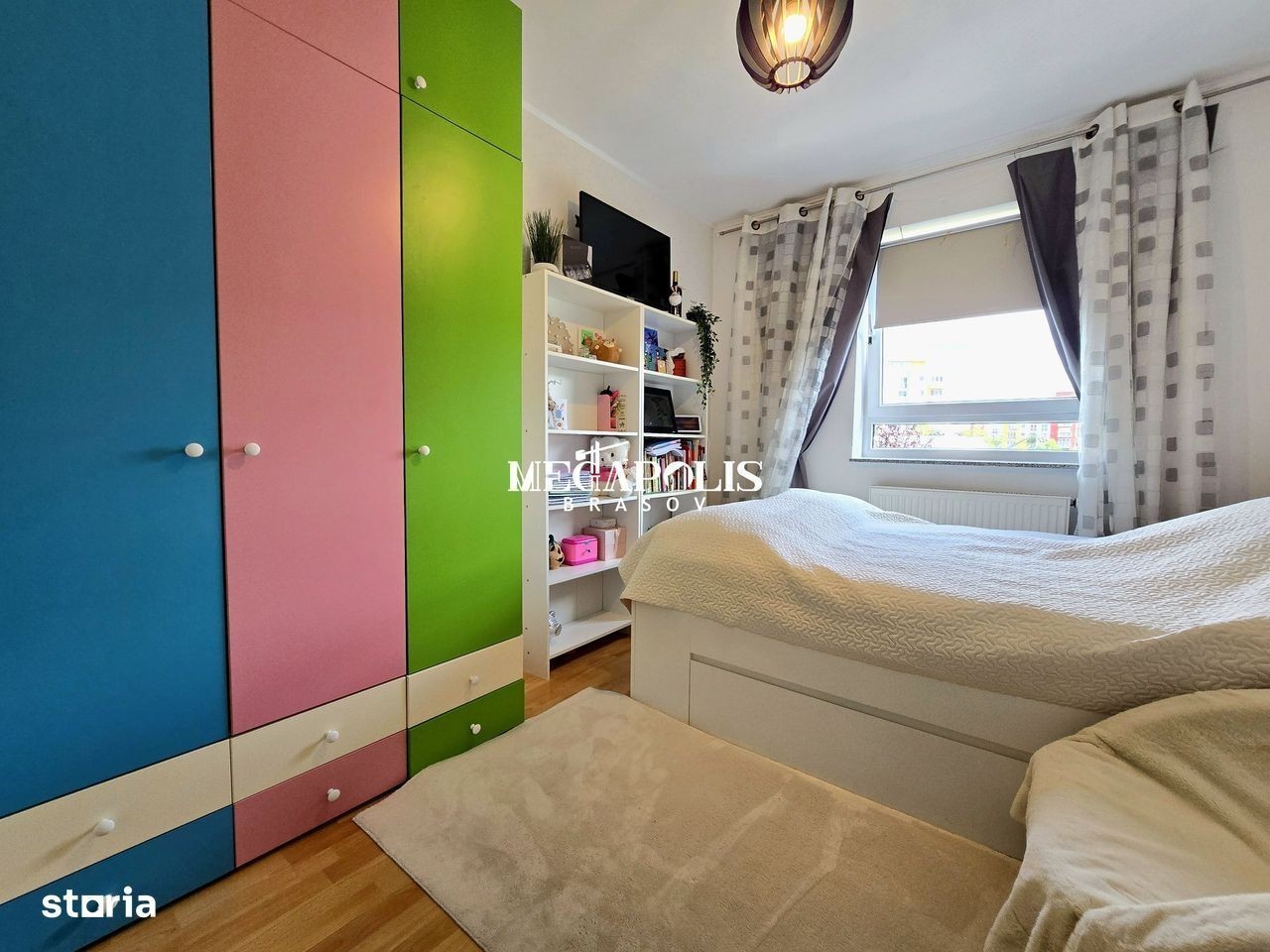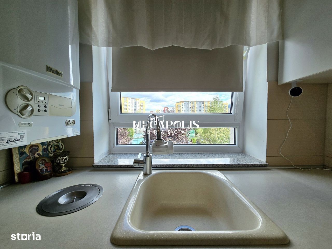 Megapolis Brașov vă propune spre vânzare un apartament modern cu 3 camere, situat în ansamblul rezidențial Avantgarden Brașov, o zonă apreciată pentru liniște, siguranță și proximitatea față de facilități. Proprietatea se află la etajul 2/8 (etaj intermediar, avantajos), într-un bloc construit în 2012, și se vinde complet mobilată și utilată, conform pozelor. Detalii apartament: Suprafață utilă: 72 mp + 2 balcoane, suprafață totală 78,74 mp Compartimentare: decomandată Living spațios și luminos Dormitor 1 (16,7 mp): prevăzut cu balcon închis cu sistem glisant panoramic (panouri de sticlă culisante, ce permit transformarea spațiului în balcon închis sau deschis, cu izolare termică sporită). În plus, camera are spațiu pregătit pentru montarea unui șemineu decorativ sau electric. Dormitor 2 (10,95 mp): amenajat în prezent ca cameră pentru copil Dormitor 3 (12,22 mp): dotat cu balcon deschis, vedere spre zona verde Bucătărie complet utilată și mobilată: frigider, cuptor electric, cuptor cu microunde, mașină de spălat vase, masă rabatabilă (electrocasnicele mici nu sunt incluse) 2 băi moderne, complet echipate Hol spațios + dressing pentru depozitare eficientă Dotări suplimentare: sistem anticalcar/dedurizator pentru protecția instalațiilor Alte beneficii: Aer conditionat Loc de parcare inclus Boxă pentru depozitare Vedere plăcută spre zona verde, apartamentul nu este situat pe colț Încălzire cu centrală termică proprie și geamuri termopan Ansamblu rezidențial modern, cu acces rapid la transport în comun, școli, grădinițe, magazine și zone de relaxare Avantaje: Apartament luminos, poziționat la etaj intermediar Compartimentare practică și spații generoase Ideal pentru familii sau pentru cei care își doresc un apartament modern, complet utilat, într-o zonă apreciată Preț vânzare: 198.000 € Se acceptă plata prin credit bancar Comision 0 pentru cumpărător