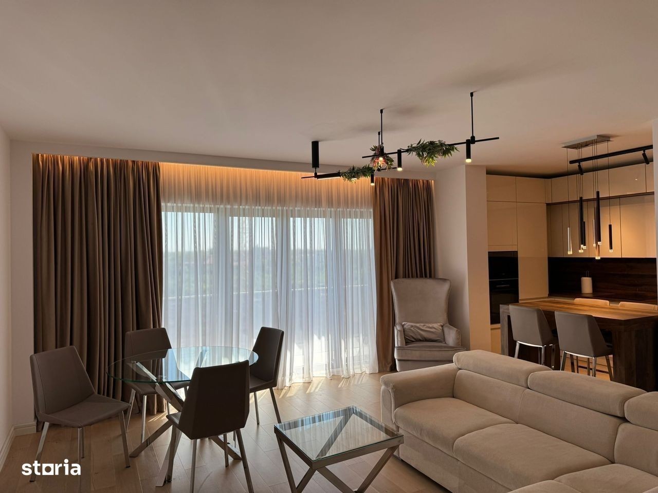 De închiriat - Apartament 3 camere complet mobilat și utilat - Grand Park Pipera, zona Iancu Nicolae Vă propunem spre închiriere un apartament modern și elegant, situat la etajul 4/4 al ansamblului rezidențial Grand Park Pipera, într-o zonă exclusivistă și liniștită, cu acces facil către școli internaționale, centre comerciale și zone de recreere. Caracteristici: • 3 camere luminoase și bine compartimentate • Suprafață generoasă • Living spațios cu zonă de dining • Bucătărie open space, complet mobilată și utilată cu electrocasnice de ultimă generație • Dormitoare confortabile, dotate cu spații de depozitare ample • 2 băi moderne cu finisaje premium • Mobilier modern, în stare impecabilă • Aer condiționat și centrală termică proprie • Balcon cu priveliște deschisă • Lift modern și parcare subterana Disponibil imediat Perfect pentru o familie sau pentru persoane care își doresc confort, intimitate și acces rapid la facilitățile zonei de nord a Capitalei.