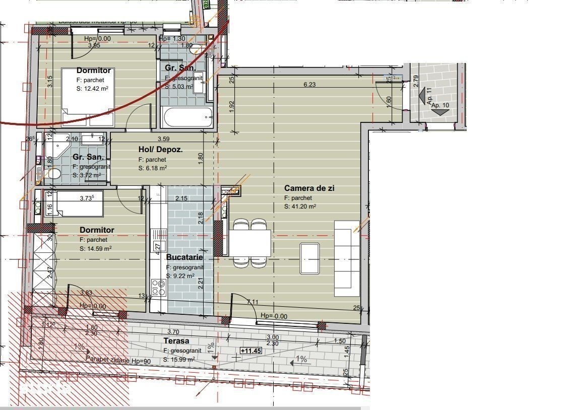 Impakt Imobiliare va propune spre vanzare un apartament cu 3 camere semidecomandat, in zona Centrala a Clujului! Apartamentul dispune de o suprafata utila de 92.36 mp la care se adauga un balcon de 15.99mp si este compartimentat astfel: 2 dormitoare, unul cu baie proprie, un living cu bucatarie, o baie pe hol, un hol. Acesta se afla la etajul 3 (etaj1 retras) al unui imobil cu regimul de inaltime 2S+P+2E+2ER, aflat in faza de constructie. Apartamentul se preda la stadiu de semifinisat, avand peretii tencuiti si gletuiti, incalzire in pardoseala, cutii si rulouri montate actionate electric, peretii interiori si exteriori din caramida, peretii comuni cu alte apartamente din caramida umpluta cu vata bazaltica, pregatire instalatie aer conditionat, fatada ventilata si tencuiala decorativa, izolatie de 10 cm cu vata bazaltica. Printre Avantajele imobilului enumeram : Incalzire in pardoseala Centrala de bloc cu preparator apa calda si caldura individual Balcoane si terase placate cu gresie ceramica Gradinile cu gard si gazon verde Utilitati functionale cu contoare montate Panou tactil interactiv Smart care permite rezidentilor sa controleze si monitorizeze activitatea din apartament oriunde s-ar afla in lume Videointerfon montat Instalatie de aer conditionat Pregatire cutie rulouri si instalatie Pregatire cutie jaluzele exterioare Pregatiire cutie schimbator aer Pereti intre apartamente fonoizolanti Tamplarie Schuco sau similara Pretul unei parcari standard este de 25.000 Eur + TVA Pretul unei parcari cu statie de incarcare este de 28.000 Eur + TVA Pentru mai multe detalii sau pentru a programa o vizionare va asteptam la sediul agentiei noastre sau ne puteti suna la numerele de telefon afisate. *Termen de predare in toamna anului 2025* ** In pretul afisat nu este inclus si TVA-ul** *Avans minim 50 %