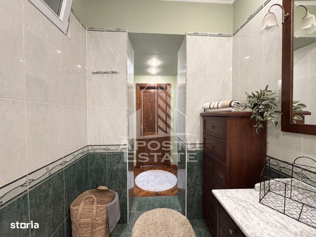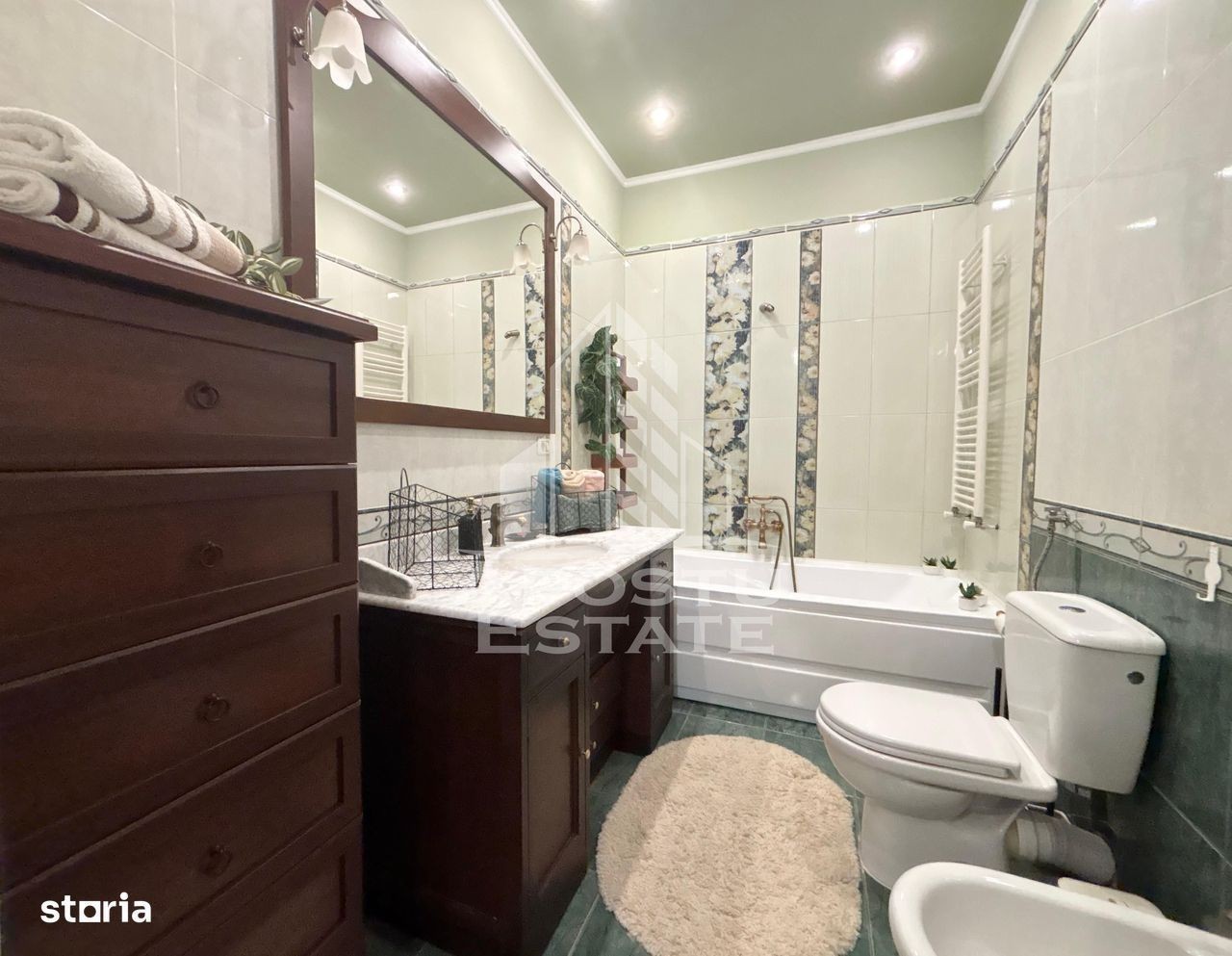 APOSTU ESTATE va propune spre inchiriere un apartament superb si complet utilat, cu 3 camere, situat chiar in centrul Timisoarei - ideal pentru cei care isi doresc confort, eleganta si acces rapid la toate punctele de interes ale orasului. Suprafata utila: 132 mp Compartimentare semidecomandata: • Hol de acces • Baie de serviciu • Living generos • Living open-space cu bucatarie complet mobilata si utilata + canapea extensibila • Dormitor matrimonial si dressing • Baie cu cada si bideu + geam pentru ventilatie naturala • Balcon Dotari si facilitati: • Centrala proprie cu incalzire prin calorifere • Aer conditionat • Masina de spalat vase • Masina de spalat rufe • Televizor • Pian • Apartamentul beneficiaza de 2 sobe functionale, care completeaza sistemul de incalzire prin centrala proprie, oferind atat caldura suplimentara, cat si un farmec aparte. Localizare excelenta: Amplasat chiar in inima orasului, langa Piata Libertatii, cu acces facil catre Piata Unirii, Parcul Botanic, restaurante, supermarketuri si mijloace de transport in comun. Pret chirie: [1290€] Garantii: 2 luni Disponibilitate: imediata Programeaza o vizionare! ID intern: 2728360