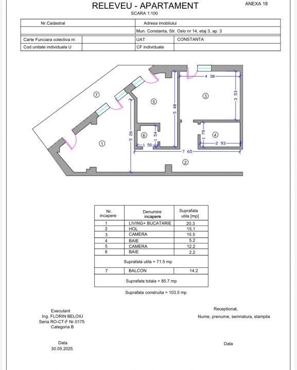 Maria Residence - locuința ta modernă în Tomis Plus Te invităm să descoperi Maria Residence, un bloc nou finalizat, situat pe strada Oslo nr. 14, în inima cartierului Tomis Plus. Imobilul este structurat pe P+4+SP.TH, dotat cu lift modern și construit la cele mai bune standarde. Tipuri de apartamente disponibile: 2 studiouri spațioase 11 apartamente cu 2 camere 3 apartamente cu 3 camere Suprafețe utile: De la 37,17 mp + balcon 12,02 mp până la 71,93 mp + balcon 22,21 mp - ideale pentru un stil de viață modern și confortabil. Prețuri atractive: Începând de la 60.000 € + TVA până la 112.000 € + TVA, cu posibilitatea de achiziție la stadiul de “alb” sau complet “la cheie” contra cost, după preferințele tale. Parcare acoperita: 5.000 euro + TVA Localizarea excelentă, liniștea zonei și accesul rapid către punctele de interes fac din Maria Residence alegerea perfectă pentru o locuință proprie sau o investiție sigură. Pentru detalii și programarea unei vizionări, nu ezita să ne contactezi!