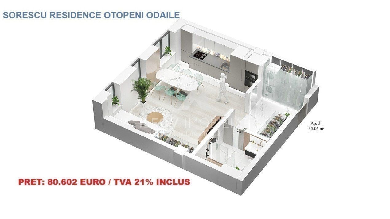 ILFOV IMOBILIAR -"O mutare isteață!" SORESCU RESIDENCE OTOPENI - STUDIO SI GARSONIERA PREȚ DE LA : 80.224 EURO TVA 21% INCLUS Te invităm să faci parte dintr-un proiect nou în Otopeni, un bloc modern, unde fiecare detaliu este gândit pentru a-ți oferi un trai confortabil și plăcut. Alege să locuiești într-un loc ce promite să fie un punct de referință în zonă, combinând stilul cu funcționalitatea. Amplasare foarte buna pe str. Marin Sorescu la 2 min de Parcul 1Mai din Otopeni si 10 min de viitoarea gura de metrou Bruxelles in proximitatea Aeroportului Internațional Otopeni, Baneasa Shopping City, Therme Bucuresti, Padurea Baneasa. In zona se gasesc scoli, gradinite publice si magazine de consum Lidl, Mega Image, Penny, etc. Ansamblul beneficiaza de o legatura facila cu acces imediat in Dn1 și Centura Bucuresti, iar ca mijloace de transport in comun avem stația Primaria Otopeni si Amco cat si linia de autobuz 100 cu acces către centrul Bucurestiului. Pentru accesul rapid catre centru Otopeni si liceul Ioan Petrus exista autobuzul intern Linia Albastra. Cladirea este realizată din cărămidă si beton armat, termoizolație polistiren 10cm, acoperiș învelit cu tablă fălțuita, tâmplărie tripan gri Salamander, încălzire în pardoseală, lift hidraulic. Proiectul va avea un total de 24 de apartamente cu 2 si 3 camere, studiouri si o singura garsoniera, în configurații diferite, cu opțiuni ce includ balcoane sau terase. Locurile de parcare se pot achizitiona impreuna cu apartamentul sau separat, la prețul de 4000Eur + Tva. Oferim cele mai bune soluții de creditare prin colaborarea cu brokerul din cadrul agenție noastre. Dacă doriți o colaborare cu agenția noastră, ne puteți scrie pe adresa de email sau va așteptăm la sediul situat în Otopeni, str. 23August, nr. 152A, Ilfov. Va așteptăm la vizionare! Contact: