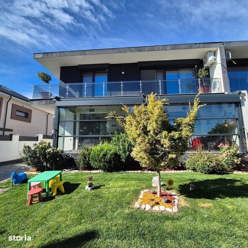 Va propunem spre achizitie vila 5 camere Tunari, cu gradina si vedere la lac Tunari P+1 - 210 mp construiti - 141 mp utili | - 302 mp teren 490.000 euro Casa moderna, stil mediteranean, finalizata in 2022, complet mobilata si utilata premium mutare imediata.
