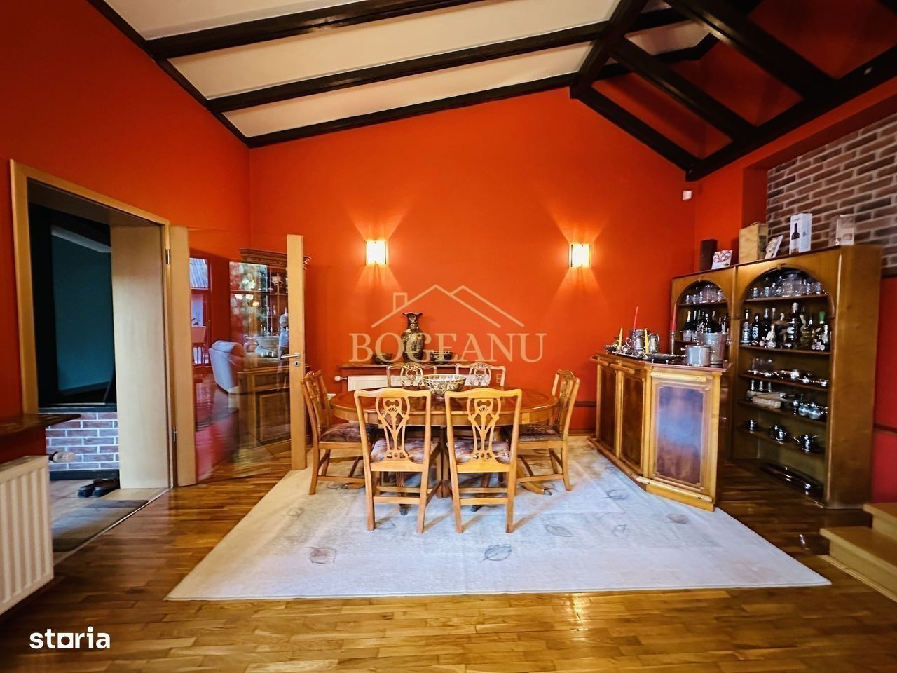 Vilă individuală EXCEPTIONALA - P+E+M - Chișoda (limită Timișoara) Preț: 520.000 € | Comision 0% pentru cumpărător Date generale • Regim de înălțime: Parter + Etaj + Mansardă • Suprafață teren: 2.000 m² • Suprafață construită: 640 m² • Suprafață utilă: 533 m² • Terasa acoperită: 25 m² • An construcție: 1992 (BCA) • Renovare totală: 2002 • Amplasament: poziție frontală la asfalt, toate utilitățile racordate Compartimentare • Parter: • Hol de acces generos • 2 dormitoare (ambele cu baie proprie) • Living foarte spațios • Bucătărie de mari dimensiuni + zonă de dining (separată parțial de corpul principal) • Coridor de legătură între corpuri • 3 băi pe nivel (dormitoare + zonă de zi) • Etaj: • Dormitor matrimonial cu baie în suite și dressing • 2 dormitoare suplimentare • 1 baie comună • Mansardă: • 3 dormitoare (două cu dressing) • 1 baie Finisaje & dotări premium • Izolație termică exterioră - 10 cm polistiren • Ușă de intrare - lemn masiv • Uși interioare - lemn natural • Ferestre PVC tripan (culoare Maroc), geam termopan, plase insecte • Pardoseli: parchet lemn masiv triplu stratificat, gresie și faianță de calitate superioară • 2 centrale termice pe gaz + calorifere • Sistem climatizare complet • Baloane din lemn în stil italian la toate ferestrele Exterior & anexe • Grădină matură cu arbori ornamentali, brazi de munte, tuia și spații verzi generoase • 2 anexe locuibile (155 m² fiecare) • 3 garaje independente Potențial investițional Imobilul este ideal pentru: • Pensiune boutique • Azil de bătrâni • After-school sau grădiniță • Reședință deosebită pentru familia numeroasă Servicii gratuite pentru clienții noștri • Consultanță financiară • Consultanță juridică Pentru vizionări și informații suplimentare: BOGEANU IMOBILIARE