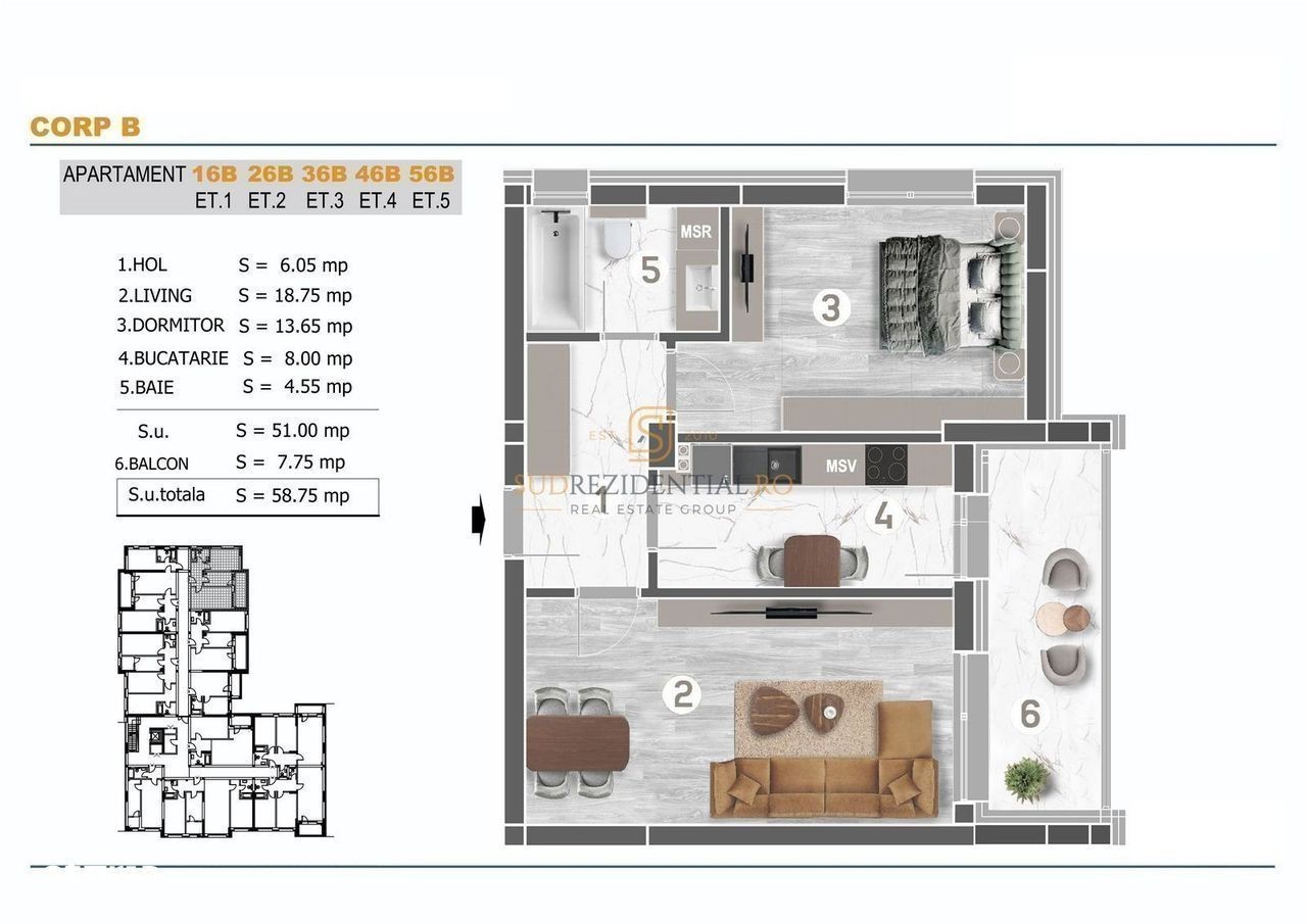 Apartament modern cu 2 camere si balcon generos - spatiu bine optimizat Acest apartament cu 2 camere, situat intr-un ansamblu rezidential nou, imbina perfect functionalitatea cu un design modern. Cu o suprafata utila de 51.00 mp si un balcon de 7.75 mp, locuinta este ideala pentru cei care isi doresc un spatiu aerisit, bine compartimentat si cu acces facil la toate facilitatile urbane. Puncte forte ale apartamentului: - Living spatios de 18.75 mp, perfect pentru relaxare si socializare - Dormitor confortabil de 13.65 mp, oferind intimitate si confort - Bucatarie inchisa de 8.00 mp, ideala pentru organizare si functionalitate - Baie de 4.55 mp, dotata cu finisaje moderne si obiecte sanitare de calitate - Hol de acces de 6.05 mp, ce permite amenajarea unor spatii de depozitare - Balcon de 7.75 mp, un spatiu exterior generos, ideal pentru relaxare sau amenajare cu mobilier de terasa Locatie si accesibilitate: Situat intr-o zona rezidentiala moderna, apartamentul beneficiaza de acces rapid la toate punctele de interes esentiale: - Centre comerciale in apropiere: Grand Arena Mall, Carrefour, Lidl, Kaufland, Metro, Auchan, Hornbach - Scoli si gradinite la doar cateva minute, perfecte pentru familii - Transport public accesibil: statia STB la doar 100 m, cu legatura catre metrou Aparatorii Patriei - Parcul Tudor Arghezi, la cateva minute distanta, cu zone verzi, locuri de joaca si terenuri de sport - Acces facil catre principalele artere: Bd. Constantin Brancoveanu, Bd. Metalurgiei, Bd. Alexandru Obregia Datorita suprafetelor generoase, compartimentarii inteligente si pozitiei excelente, acest apartament este alegerea perfecta pentru cei care doresc un spatiu modern, confortabil si bine conectat la oras! Pret de lista: 94.000 Euro + TVA Pret promotional pentru avans de 15% din valoarea imobilului: 89.500 Euro + TVA