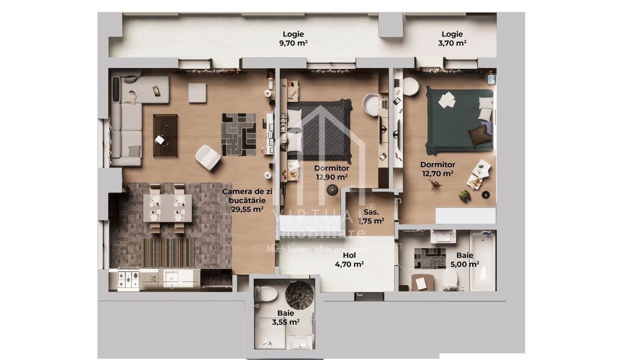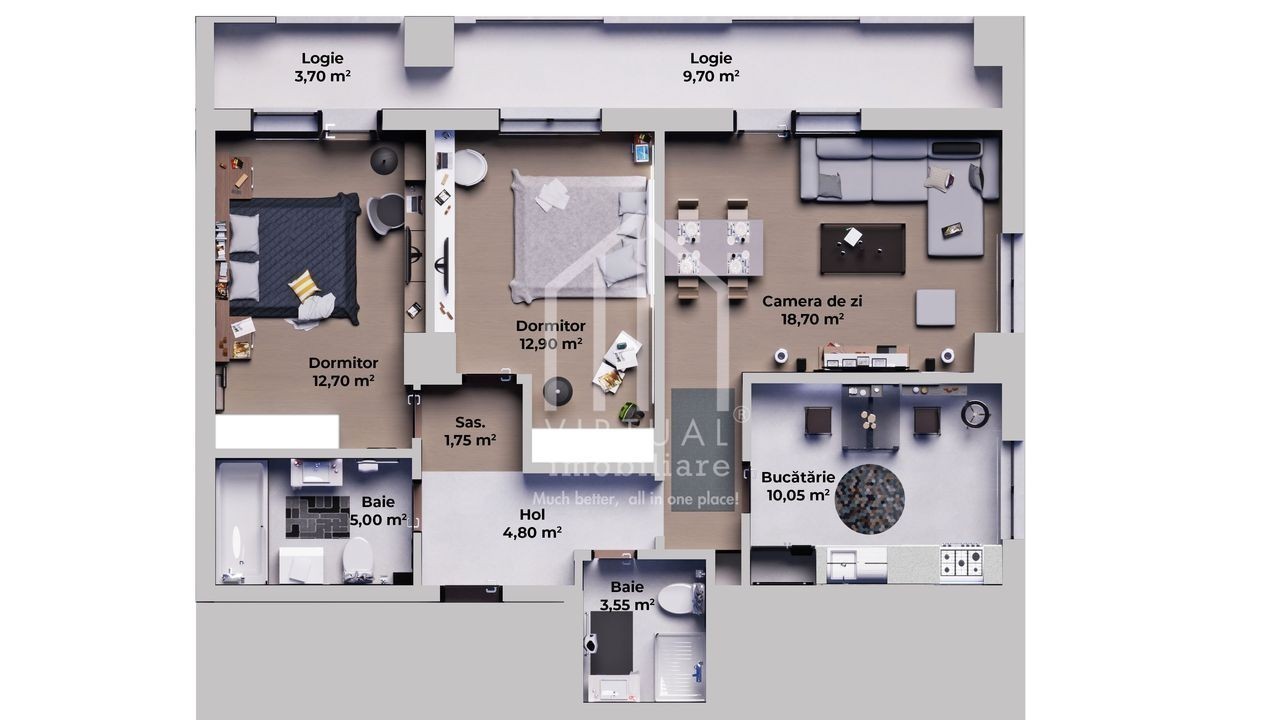 Apartament de vanzare cu 3 camere, logie de 13,4 mp si loc de parcare inclus. Locatie: Sibiu, zona Calea Surii Mici, Avantaje: -Loc de parcare -Logie 13,4 mp -Acces securizat -Balcoanele se predau la stadiul de cheie cu gresie si sticla securizata. -Stadiu de predare - la alb -Centrala proprie in condensatie marca Bosch + senzor de gaz -Incalzire in pardoseala Compartimentare: -Hol -Camera de zi cu bucatarie deschisa -Doua dormitoare -Doua bai -Logie Apartamentul se predala alb cu aproximatie in octombrie 2026. Orice modalitate de plată este acceptată, cu un avans minim de 15%. Iti doresti mai mult decat o simpla locuinta? Noi suntem aici pentru a-ți oferi cele mai bune soluții. Oferim servicii de DESIGN SI AMENAJARI INTERIOARE, PROPERTY MANAGEMENT, REGIM HOTELIER, HOME STAGING, VIRTUAL INVESTMENT, SERVICII DE CURATENIE.
