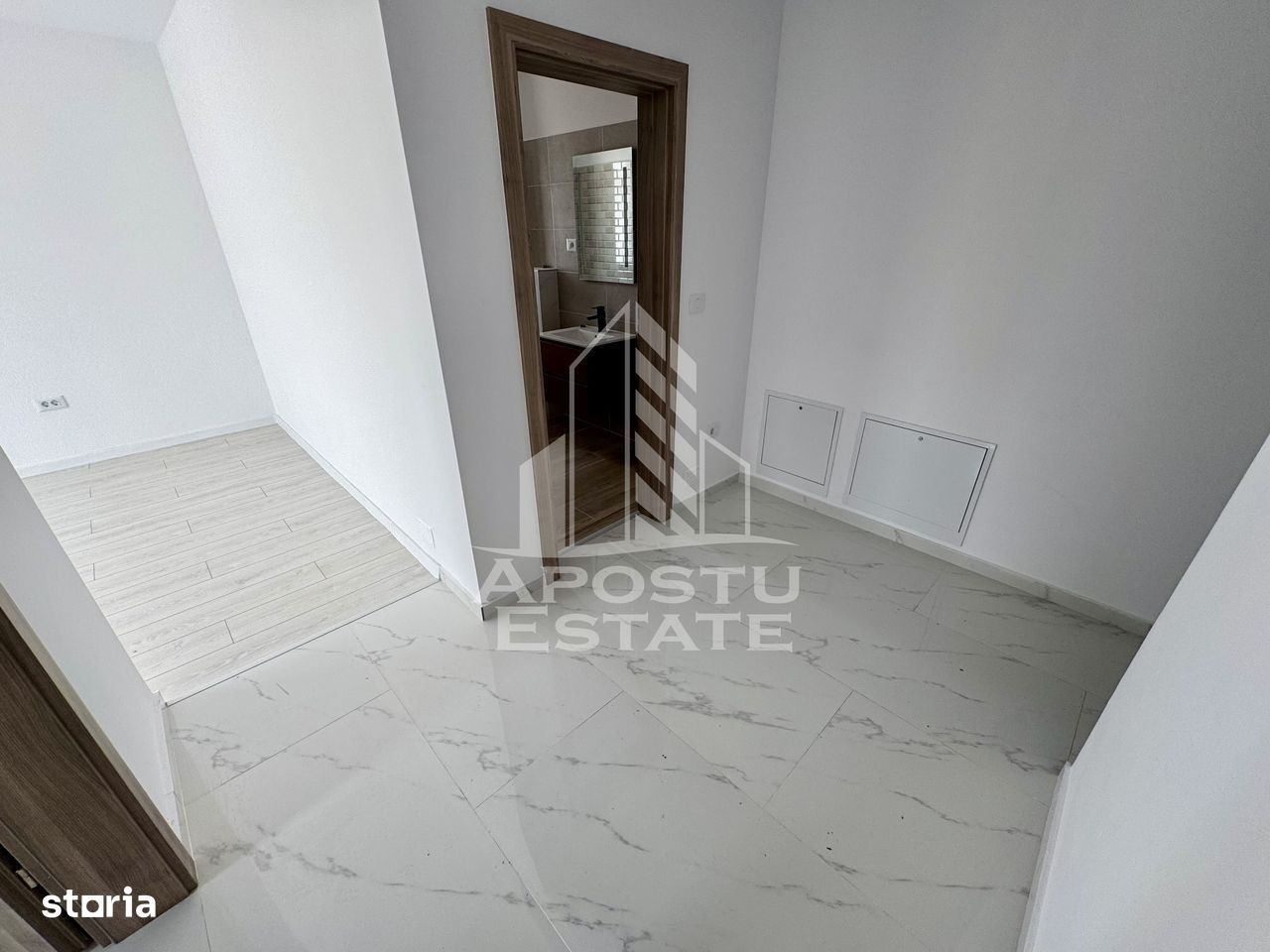 APOSTU ESTATE va ofera spre vanzare apartamente cu 1 camera, situate in Giroc in spatele hotelului IQ in zona Planetelor. In apropiere sunt magazine si supermarket-uri precum: Lidl, Profi, Mega Image, mijloc de transport in comun, scoala si gradinita la o distanta de 10 minute, parc. Imobilul este in curs de finalizare, termenul de predare fiind luna Martie. Modelul de apartament este disponibil la parter si etajul 3 (cu pod) Suprafata apartamentului este de 35 mp utili. Compartimentare: - hol acces - bucatarie inchisa - camera de zi - baie cu cada si geam - balcon Pretul difera in functie de etaj. Fiecare apartament dispune de un loc de parcare inscris in Cf. Toate finisajele sunt realizate mecanizat cu produse de calitate superioara atent creionate. Detalii tehnice: - regim de inaltime Parter + 3 etaje + Pod. - constructie realizata in anul 2024 din caramida Porotherm de 30 cm. - exterior izolat cu polistiren de 10 cm eps 80. - pereti despartitori complet din caramida (fara rigips) tencuiti mecanizat finisati cu glet si vopsea lavabila alba. - geamuri termopan cu 3 sticle pentru izolare atat fonica cat si termica superioara, foarte mari si luminoase. - centrala proprie pe gaz, incalzire cu calorifere. - usa acces securizata, usi interioare Porta Doors. - baia este dotata cu obiecte sanitare. Utilitati complete: curent, apa de la retea, canalizare, gaz, internet prin fibra optica, cablu Tv. Blocurile sunt dotate cu videointerfon, sisteme de supraveghere video pentru parcare, calea de aces este asfaltata, intreg complexul este iluminat. Pentru mai multe detalii nu ezitati sa ne contactati! Acceptam orice fel de credit bancar. Oferim consultanta si solutii financiare prin colaboratorii nostri pentru a obtine cel mai avantajos credit Ipotecar sau Noua Casa. Va asteptam cu drag la o vizionare chiar astazi! CP1897874.