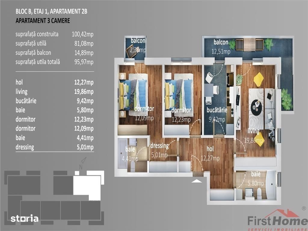 Ap 3 camere 96 mp utili, EXPRES Residence, BLOC NOU, str Cotesti