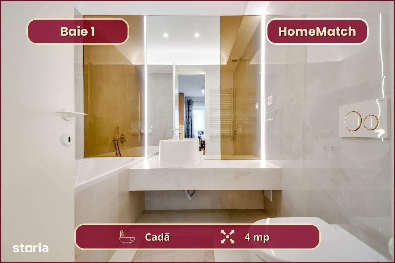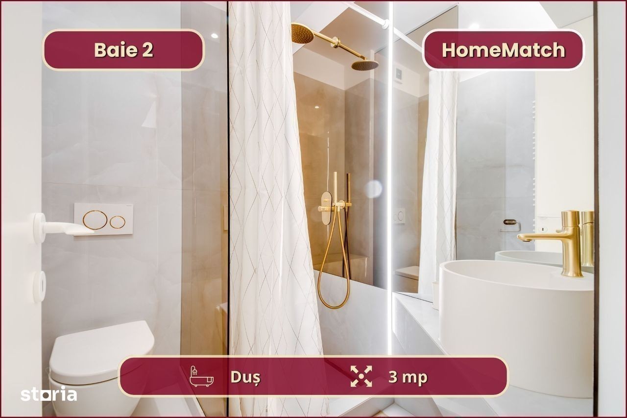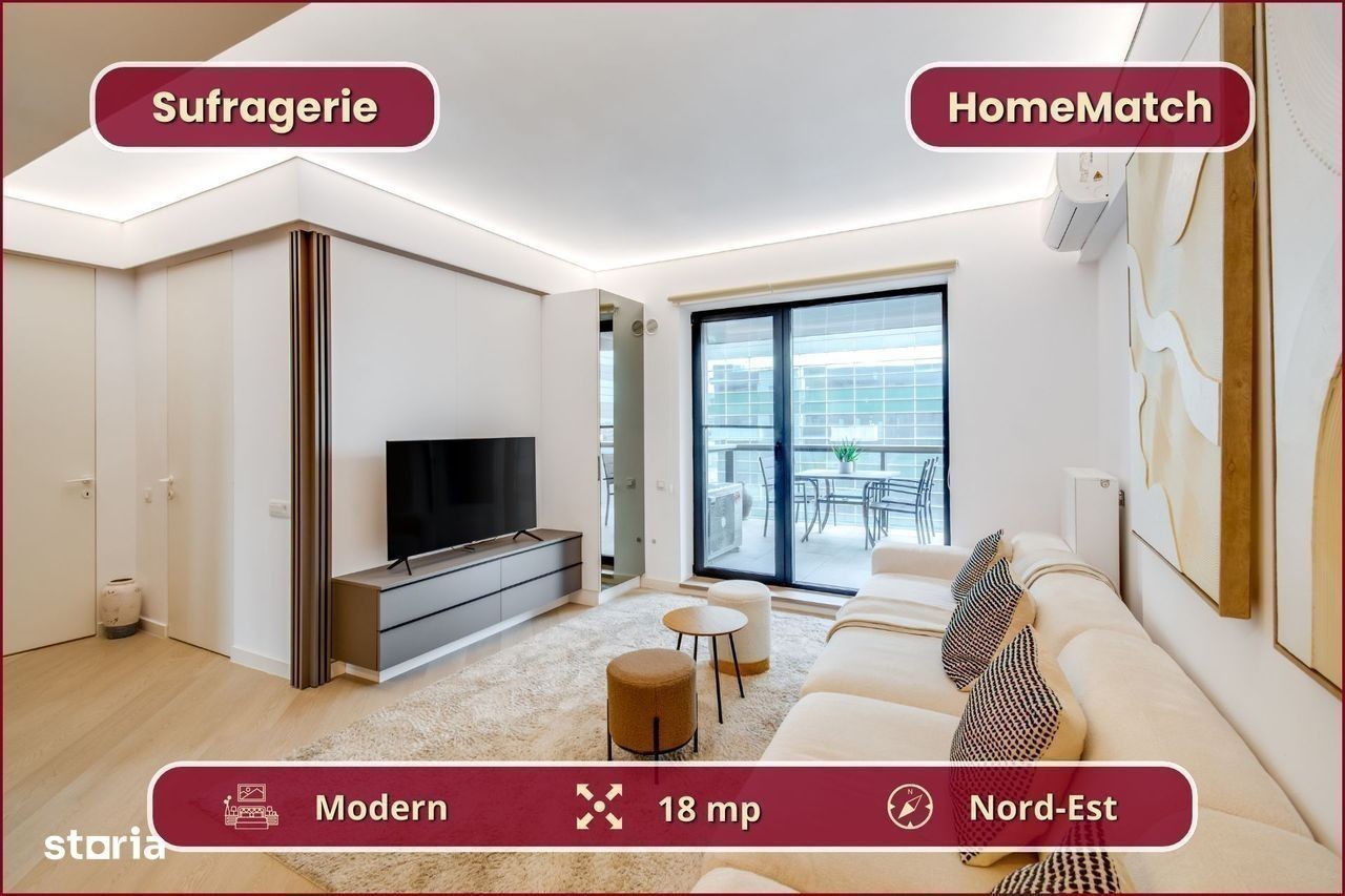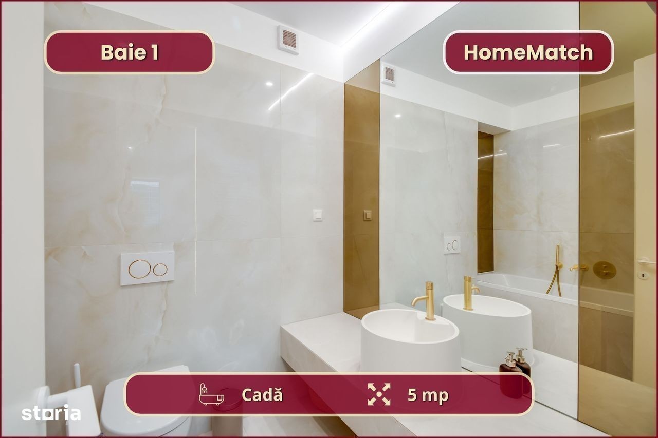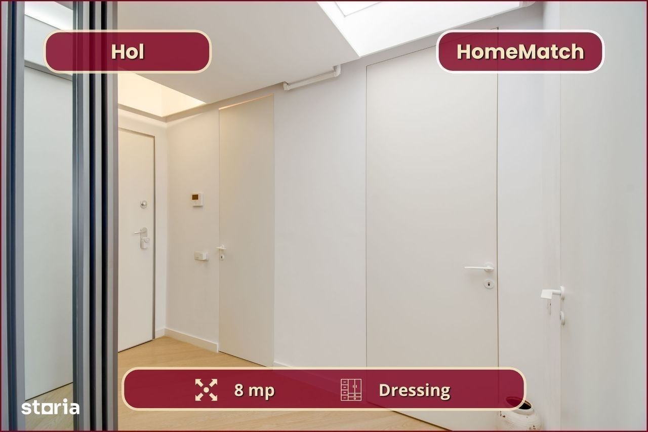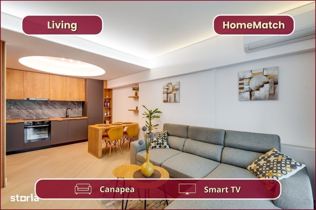 Vrei să locuiești într-un cartier exclusivist din Nordul Bucureștiului? Vrei să ajungi mai repede la biroul din Pipera, la școlile internaționale de prestigiu și la restaurantele selecte de pe Șoseaua Nordului? Închiriază unul dintre superbele apartamente din ansamblul rezidențial Cortina North! Ansamblul Cortina North se află în zona Pipera (Voluntari, Ilfov), la doar 3 minute de centrul comercial Pipera Plaza. Apartamentul are o suprafață totală de 76 mp și este compus din: - living (18 mp): amenajat cu canapea și smart TV; - bucătărie (6 mp): deschisă, mobilată și utilată complet; - balcon (10 mp): nemobilat; - dormitor matrimonial (15 mp): dotat cu pat dublu și dressing; - baie matrimonială (5 mp): dotată cu cadă; - dormitor secundar (12 mp): se mobilează la cerere; - baie secundară (3 mp): dotată cu duș - hol de acces (8 mp): amenajat cu dressing. Finisajele, mobilierul și electrocasnicele sunt produse noi, de cea mai bună calitate: - fațadă ventilată, obiecte sanitare și tâmplărie aluminiu de înaltă calitate; - mobilier nou, de cea mai bună calitate; - mașină de spălat rufe, mașină de spălat vase, frigider, cuptor, aragaz, hotă. Ansamblul rezidențial dispune de următoarele facilități: - parcare subterană pe 2 niveluri (1 loc inclus): mașinile sunt ferite de praf, soare și precipitații; - centru wellness, bazin semiolimpic și pistă de alergare: stil de viață activ și sănătos. Împrejurimile oferă acces facil la toate obiectivele (cu mașina): - centre de business: Swan Office Park (3 min); - centre comerciale: Pipera Plaza (3 min); - restaurante: Nor Sky Casual (6 min); - săli de sport: 18Gym Pipera (2 min); - grădinițe și școli: Olga Gudynn Pipera (8 min); - parcuri și atracții turistice: Parcul Herăstrău (9 min); - transport: stație STV (1 min), metrou Aurel Vlaicu (6 min). Condiții de închiriere: - disponibilitate: imediat; - perioadă minimă: 1 an; - animale de companie: nu sunt permise; - fumat: permis doar pe balcon; - chirie: 1.050 euro + TVA / lună - garanție: echivalentul unei luni de chirie. Și pentru ca semnarea contractului de închiriere să fie cât mai simplă pentru tine, ți-am pregătit o ofertă imbatabilă: 0% comision! Programează o vizionare acum! HomeMatch Alege-ți locuința, nu doar o casă oarecare