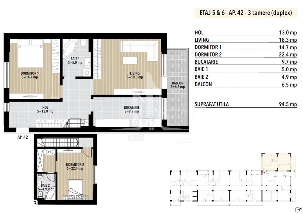 Duplex 3 camere etaj 5 & 6 Grand Arena Dealul Cucului.