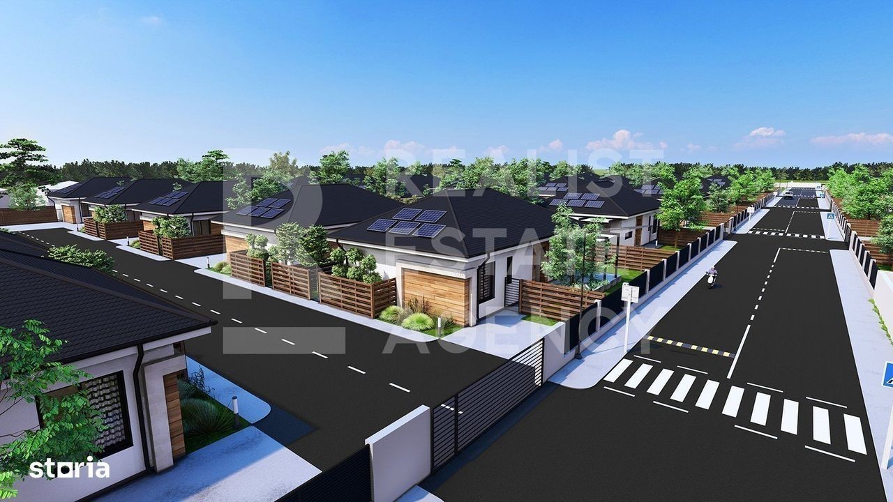 Îți dorești o casă bine gândită din toate punctele de vedere? Vino să faci cunoștință cu casele din complexul Villa Nova Residence. Aceste case îmbină perfect partea estetică cu aspectele tehnice și funcționale. Atenția la detalii este punctul forte al acestui dezvoltator. Caracteristici generale: - Suprafața teren: 467 mp - Suprafața totală a casei: 126 mp - 2 locuri de parcare Materiale și finisaje: - Finisaje premium - Încălzire prin pardoseală - Pod înalt pentru depozitare - Structura de beton - Zidărie cărămidă - Tâmplărie Pinum - Pardoseli de calitate Marazzi - Obiecte sanitare premium Hansgrohe - Uși moderne Pinum Compartimentare: - Hol acces - Living + Dining + Bucătărie - Dormitor 1, matrimonial cu dressing și baie proprie - Dormitor 2 - Dormitor 3 - Baie - Cameră tehnică - Terasă Locație: Complexul se află în localitatea Tunari, într-unul dintre cele mai conectate locuri cu Nordul Bucureștiului. Este ușor accesibil din și înspre oraș în 10 - 20 de minute cu mașina, datorită celor 4 căi de acces: - Bd. Pipera - acces pe podul peste centura București - Autostrada A3 - acces rapid în șos. Pipera, Bd. Floreasca, str. Petricani - DN1 - prin Otopeni sau centura București - Autostrada A0 Facilitățile zonei: - Magazine Mega Image, Lidl, Penny, La doi pași - Școli prestigioase, grădinițe private și de stat - Farmacii și servicii medicale - Parcuri, zone verzi și lacul Pasărea în apropiere - Săli și terenuri sportive, centru de echitație - Mijloace de transport public În rază de 15-20 minute cu maşina se află: - Aeroportul Otopeni - IKEA - Băneasa Shopping City - Mall Corbeanca - Therme - Centrul termal de relaxare, wellness și entertainment - Parcul de distracții Edenland - Grădina Zoologică Casele sunt concepute pentru a fi independente energetic, cu costuri minime de întreținere! Ca noutate, vor fi echipate cu pompă de căldură și sistem de ventilație HVAC (Heating, Ventilation, Air conditioning) cu recuperare de căldură și aport de aer proaspăt, tehnologii avansate care vor asigura atât încălzirea și răcirea casei, cât și calitatea aerului în interiorul locuinței și creșterea eficienței energetice. Casele sunt construite după norme nZEB (nearly Zero-Energy Building). Casele tip Parter oferă confortul unui cămin modern și elegant. În cadrul fiecărui ansamblu nou, casele vor fi dispuse 4 (sau 5) pe stânga și 4 (sau 5) pe dreapta, pentru a te putea bucura de siguranța și intimitatea unei comunități restrânse.