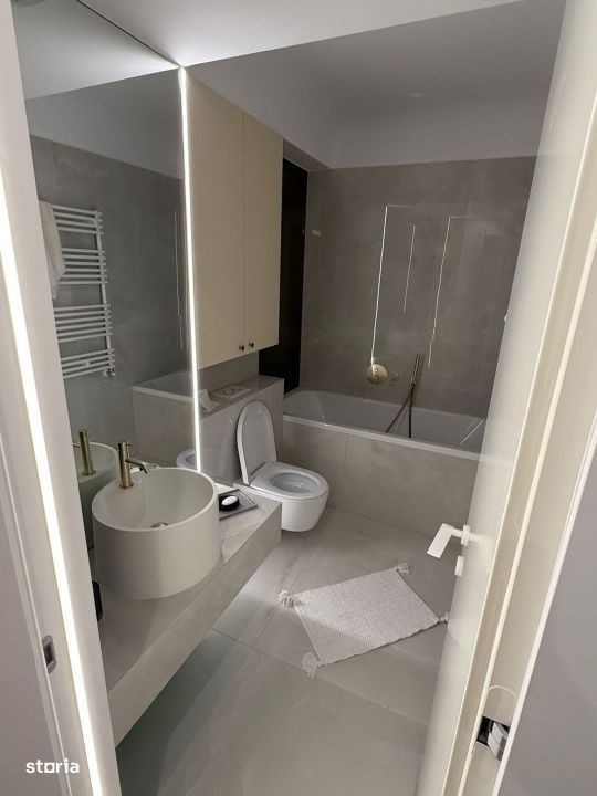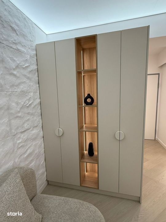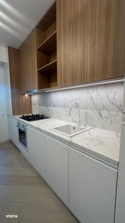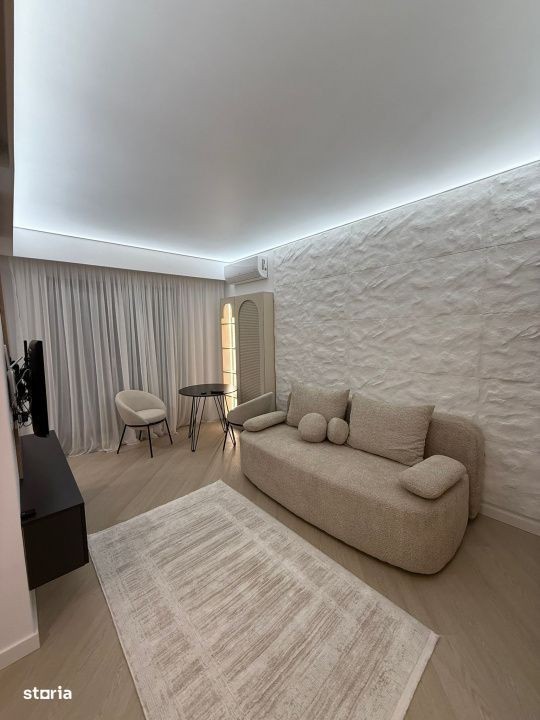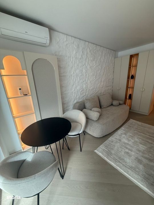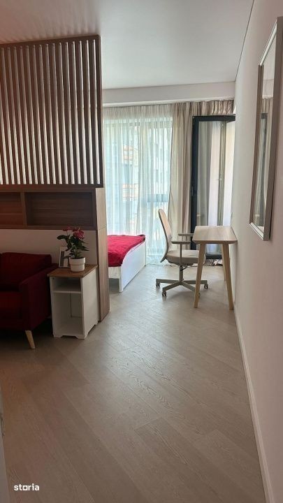 Vă prezentăm un studio deosebit, ideal pentru un stil de viață modern, situat la etajul 6/10, în nordul capitalei, într-un complex rezidențial finalizat în 2025, cu vedere panoramica catre oras. Cu o suprafață utilă totala de 41 mp si un balcon de 4,6 mp, acest studio este complet mobilat și echipat, avand un design interior modern si primitor. Compartimentarea inteligentă și spațiile de depozitare generoase asigură un mediu funcțional și confortabil, iar biroul iti ofera posibilitatea de a lucra din confortul casei tale. Bucătăria închisă este modernă, complet mobilată și utilata, se potriveste perfect cu restul amenajarii. Finisajele premium se remarcă prin parchet triplu stratificat, usi cu toc ascuns Filomuro, tavane extensibile Barrisol si instalații Geberit. Încălzirea se realizează printr-o centrală proprie, cu calorifere iar climatizarea prin aer conditionat LG prezent in fiecare camera. Între caracteristicile remarcabile ale complexului se numără fațada ventilată Swisspearl, tâmplăria din aluminiu Schuco, obiectele sanitare Daniel Rubinetterie, precum și parcarea subterană pe două niveluri, videointerfon și pază permanentă, îngrijindu-se astfel de confortul și siguranța locatarilor. Complexul Cortina North se distinge prin accentul pe siguranță, având acces controlat 24/7. Accesul se face direct din Bulevardul Pipera prin sensul giratoriu creat special în fața complexului. Facilitățile de relaxare incluse, cum ar fi un bazin de înot semiolimpic, un centru de fitness și wellness, precum și o zonă comercială, completează facilitatile deja existente in zona. Locatarii se pot bucura de o pistă de alergare și o grădină frumos amenajată, toate acestea într-un cartier vibrant. La doar 3-5-minute cu mașina, găsiți Parcul Herăstrău, Promenada Mall, stația de metrou Aurel Vlaicu, instituții de învățământ de top și o varietate de restaurante și magazine. De asemenea, complexul beneficiază de proximitatea Pipera Plaza și Lidl, iar stația de autobuz este situată convenabil în apropiere. Condiții de închiriere: 1 lună de chirie + 1 luna de garanție Parcarea este inclusa in pret. Nu se acceptă animale de companie. Pentru detalii suplimentare sau pentru a programa o vizionare, nu ezitați să ne contactați. Schita și un video de prezentare al proprietatii pot fi trimise la cerere pe WhatsApp.